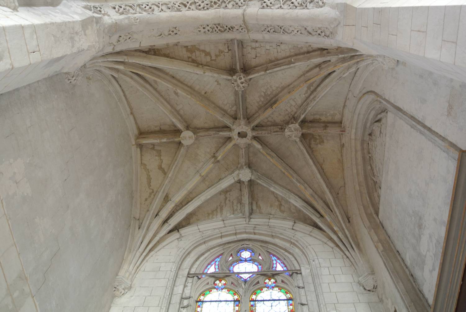 La date de 1647 et de la dénomination de Michel Boinet à côté du nom de son prédécesseur semble indiquer que les chapelles ou bras du transept furent érigés à cette date, soit une centaine d’années après la construction du chœur. C’est la thèse retenue par la littérature historique (La Picardie Historique et monumentale ou Le Ponthieu). Toutefois, il ne nous apparaît pas comme improbable que le chœur et le transept aient été érigés dans une seule phase de construction. Par contre, les voûtes du transept furent probablement érigées au XVIIème siècle. Ce phénomène a déjà été rencontré pour des raisons économiques et dans les mêmes périodes historiques (église de Hestrus, Pas-de-Calais). Bien souvent, le parti architectural initial est conservé lors de la poursuite des travaux, même si ces derniers interviennent une centaine d’années plus tard. Dans cette dernière hypothèse, il conviendrait de revoir légèrement le phasage proposé par la littérature. Cette hypothèse pourrait être soutenue par les indices et témoignages archéologiques. En effet, les culots à la naissance des voûtes portent des écussons qui renvoient aux famille de Bucy et de Héricourt et donc à la fin du XVIIème siècle. De même, les archives notariales de 1658 comportent une série de contrats de « louage de chambres de l’église d’Estrées, pour l’achèvement d’icelle église ». Un millésime de 1687, sur la voûte, vient également corroborer cette longue fin de travaux ou plutôt cette phase d’intervention sur les chœur et transept.
