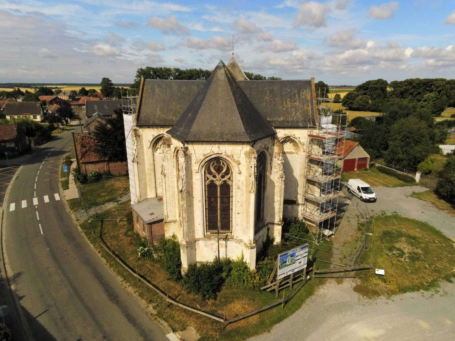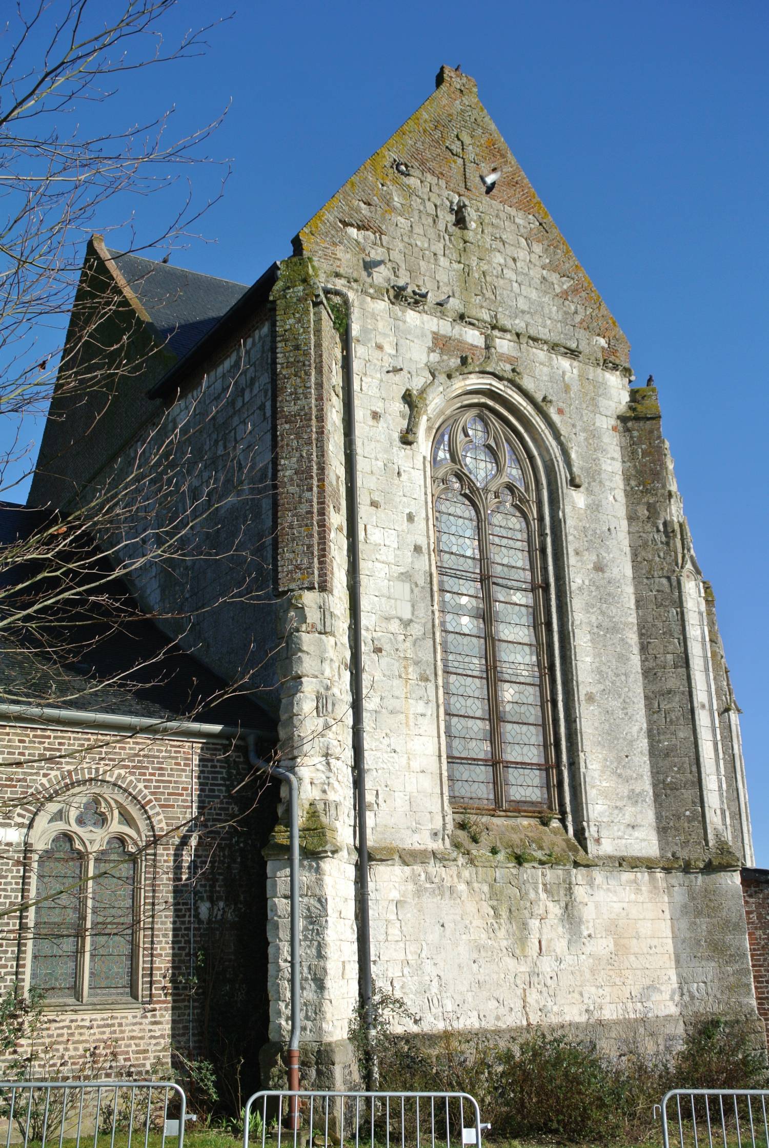 La nef fut agrandie sous la forme de deux bas-côtés après percement d’arcades dans les anciennes maçonneries de la nef centrale entre 1838 et 1847 sous la gouverne de J. Mathurel, architecte à Abbeville. Ces éléments sont assez modestes et furent réalisés en briques essentiellement. Ce fut également le cas du clocher qui fut établi en 1848 sous la gouverne de l’architecte Plichon, également d’Abbeville.