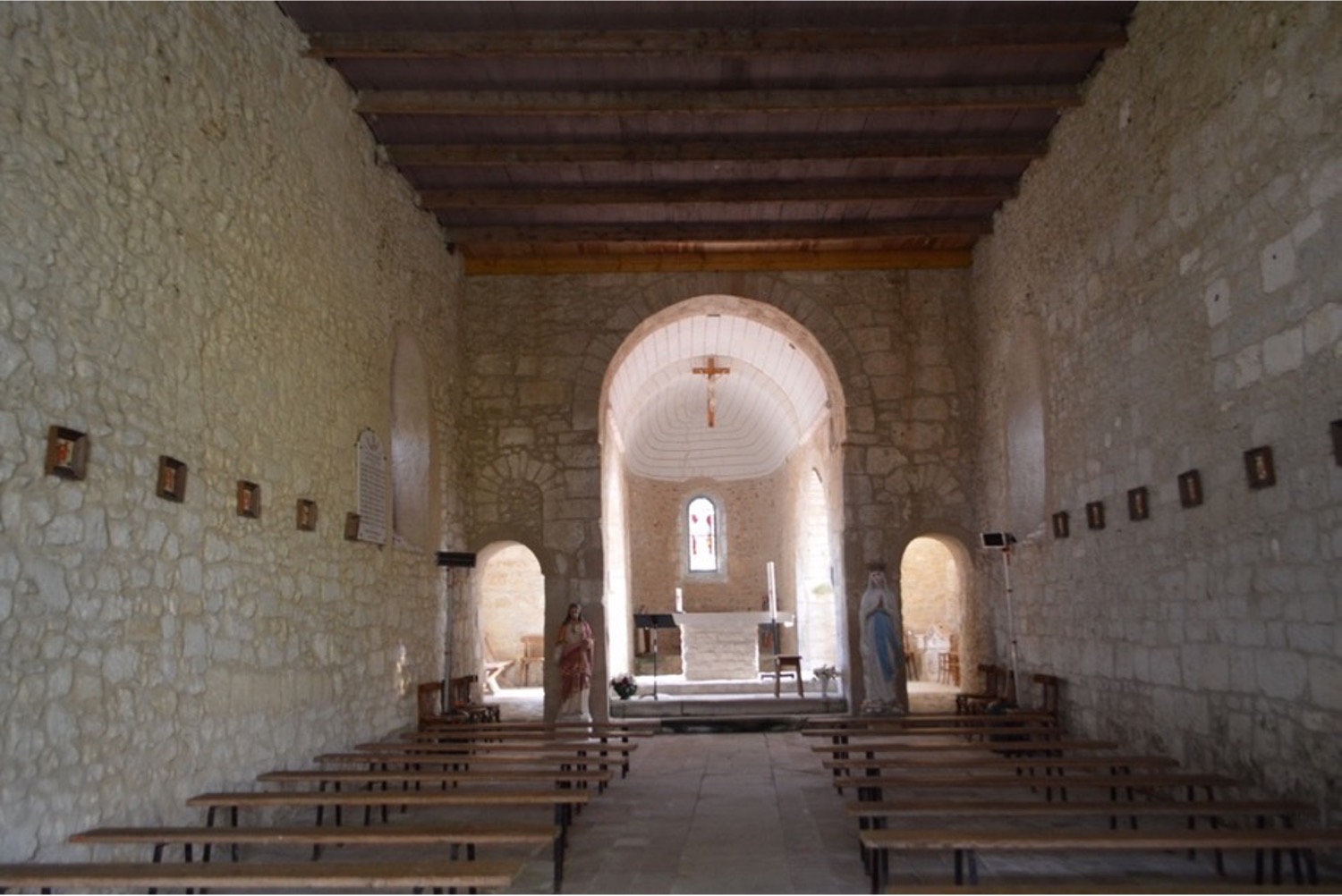 Les murs gouttereaux ont été rebâtis en moellonnage, éclairés par des baies modernes en plein cintre.