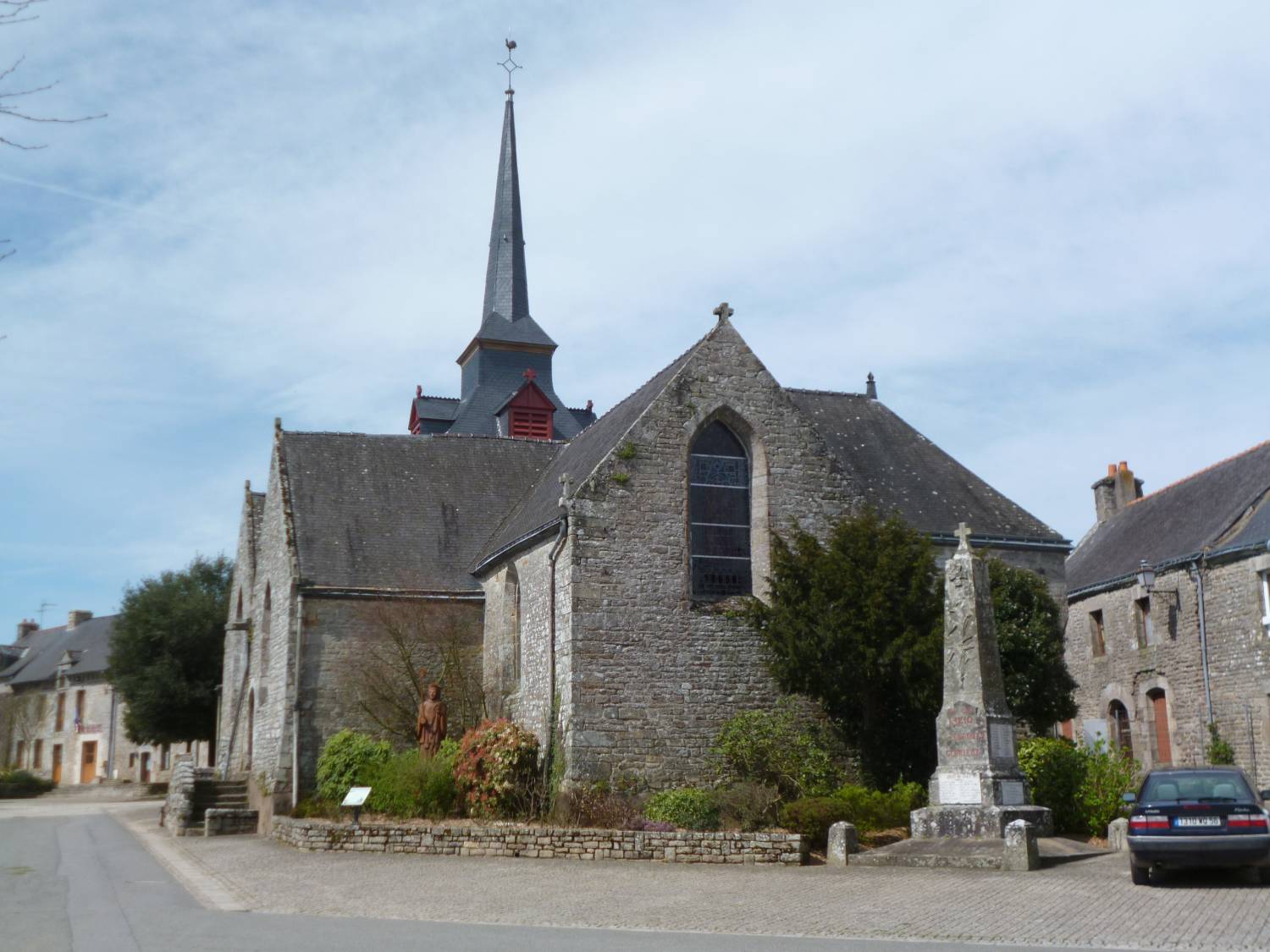 On déplace à cette époque le retable de la première moitié du XVIIIe siècle, qui se trouvait dans le croisillon sud, pour former désormais pendant avec l‘autre retable contemporain, placé dans l’ancienne chapelle seigneuriale. Le retable nord est consacré à la Donation du Rosaire, culte très développée aux XVIIe et XVIIIe s. dans cette partie du diocèse ; le tableau date de la construction du retable. Celui du retable sud a, en revanche, été peint en 1844 par L. Noël et représente l’Ange Gardien. Le reste du mobilier est composé de statues de la seconde moitié du XVIIe s. : elles sont dues probablement à l’atelier Guiot de Pontivy, et ornaient sans doute un retable de cette époque, installé, vers 1680, sur le chevet plat de l’église. Elles ont été replacées au XIXe siècle dans le lambris qui décore le chœur agrandi vers 1821-1830. Les vitraux ont été réalisés pour l’essentiel à la fin du XIXe siècle.