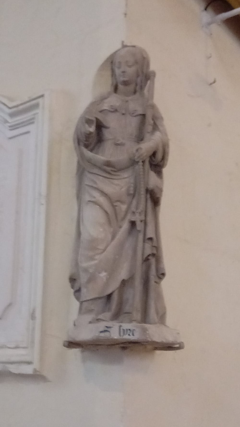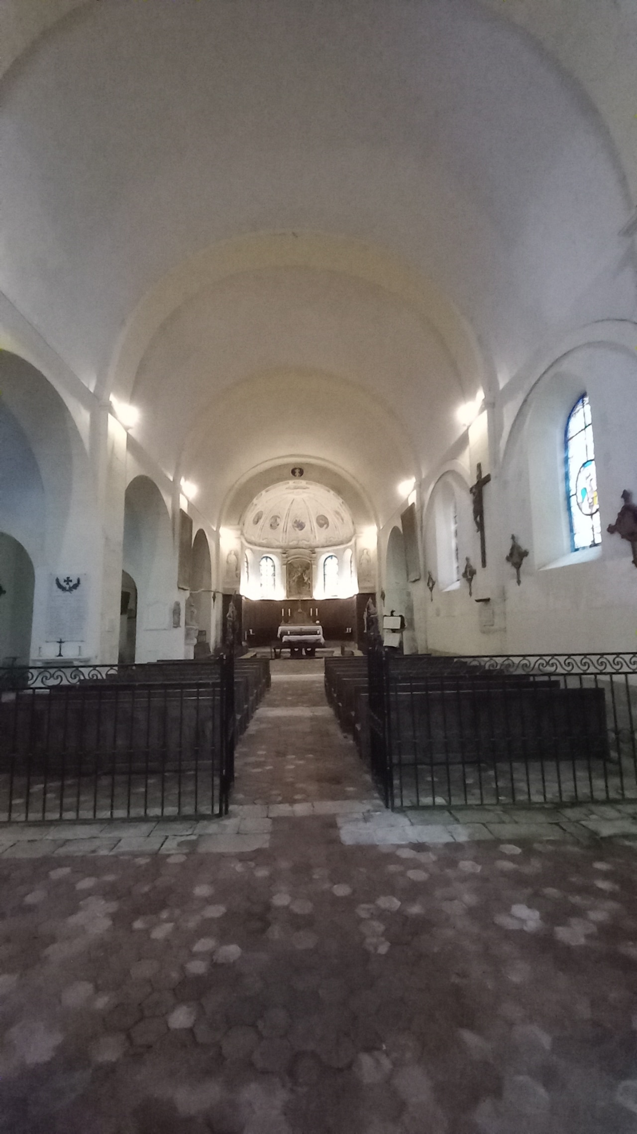 L’église présente un plan orienté en croix latine, composé d’une nef accompagnée d’un bas-côté nord, de deux chapelles formant transept et d’une abside en hémicycle. Le clocher est implanté au-dessus de la deuxième travée du bas-côté nord, tandis que l’accès principal s’effectue également par le côté nord, au niveau de la première travée. L’intérieur de l’édifice est couvert d’une voûte en berceau, et le chœur se distingue par un décor de peintures murales du XVIIIe siècle, qui ornent également l’abside et contribuent à la richesse artistique de l’ensemble.
