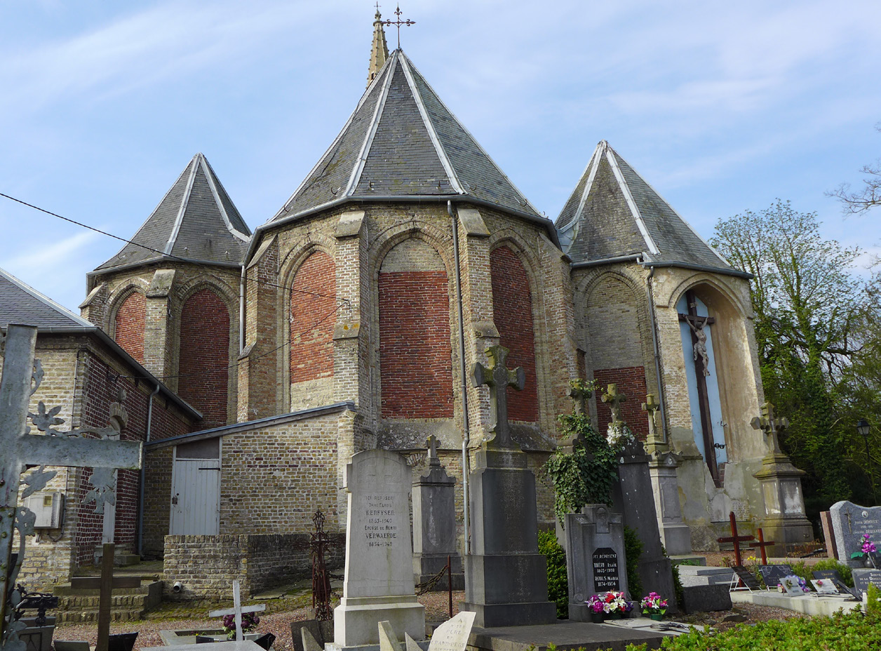Au XIXe s., l’édifice connut plusieurs campagnes de travaux dont la construction de la sacristie au Sud-Est en 1882 et la reconstruction de la tour hors oeuvre de 1893 à 1897, par Omer Cockenpot.