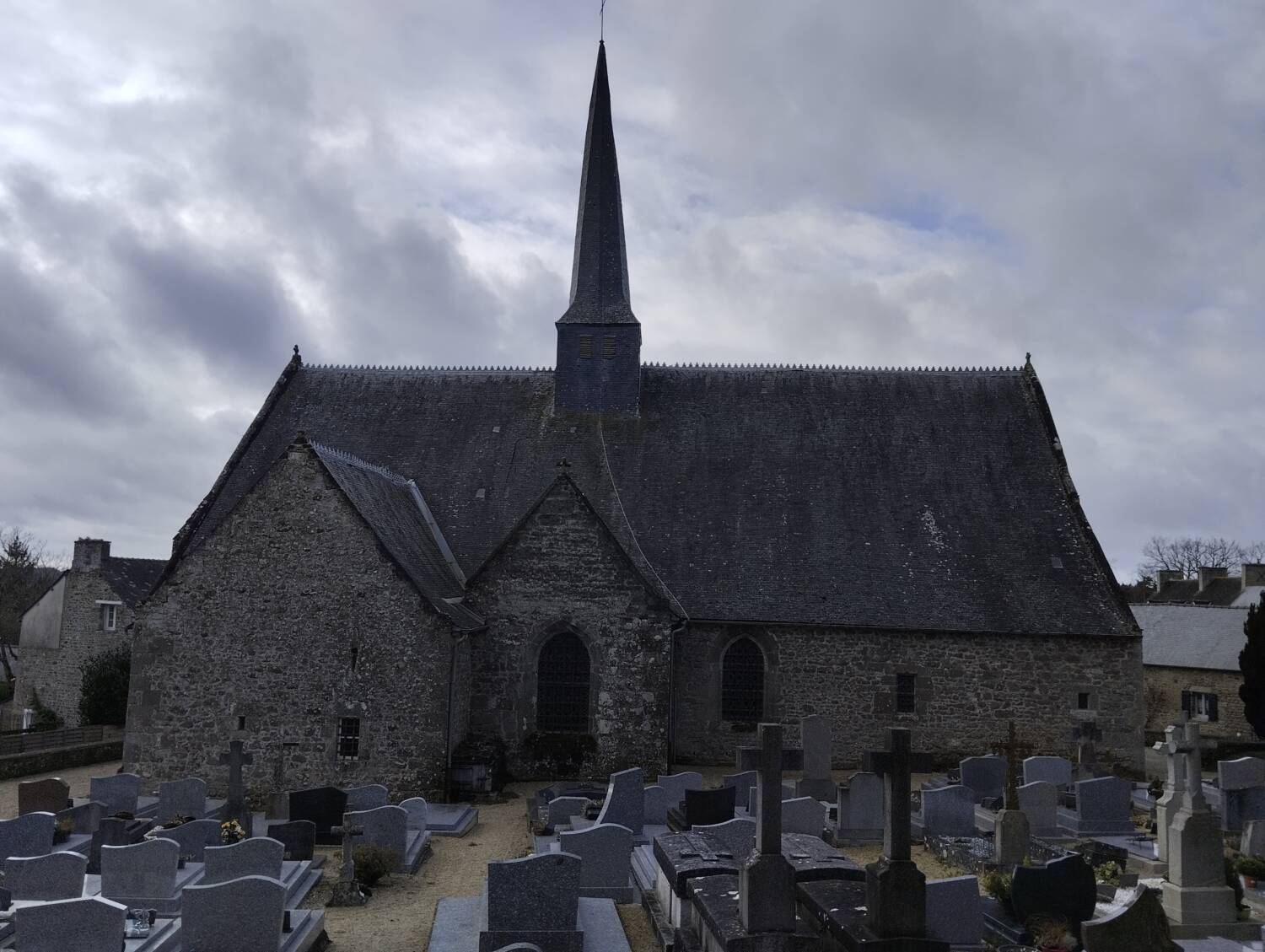 La paroisse est mentionnée en tant que telle en 1371 et appartenait dès 1447 au diocèse de Saint-Malo. L´église actuelle dédiée à Saint Gervais et à Saint Protais a été reconstruite dans la deuxième moitié du 15e siècle, entre 1458 et 1465. La date de 1465 est inscrite en lettres gothiques sur les chapiteaux du portail ouest. Sa construction hormis toutefois des différences d´appareillage est homogène. Elle conserve de cette période une belle fenêtre au réseau flamboyant dans le bras sud ainsi que les portails ouest et sud. L´ensemble à trois vaisseaux d´une grande sobriété possède peu de décor sculpté, hormis la gargouille de l´ancien porche sud. Le chœur a été reconstruit au 18e siècle sans rupture stylistique. Une pierre datée de 1773 a été vue au sommet de l´arcade sud du chœur. La toiture et le clocher ont été également refaits en 1895 par Marie Pellan, couvreur à la Ville Auray à Guenroc. L´environnement actuel de l´église résulte des modifications de 1908. Plusieurs autres restaurations et interventions ont eu lieu dans le courant du 20e siècle : la chapelle sud a été restaurée en 1938 et la niche du chœur, à jour céleste, construite en 1869 a été supprimée en 1973.