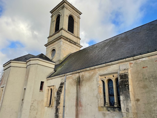 Le clocher est de forme carrée sur deux niveaux, le premier est ajouré de chaque côté par un oculus. Le second est muni d’un abat-son de chaque côté. Une girouette surmonte la toiture du clocher.