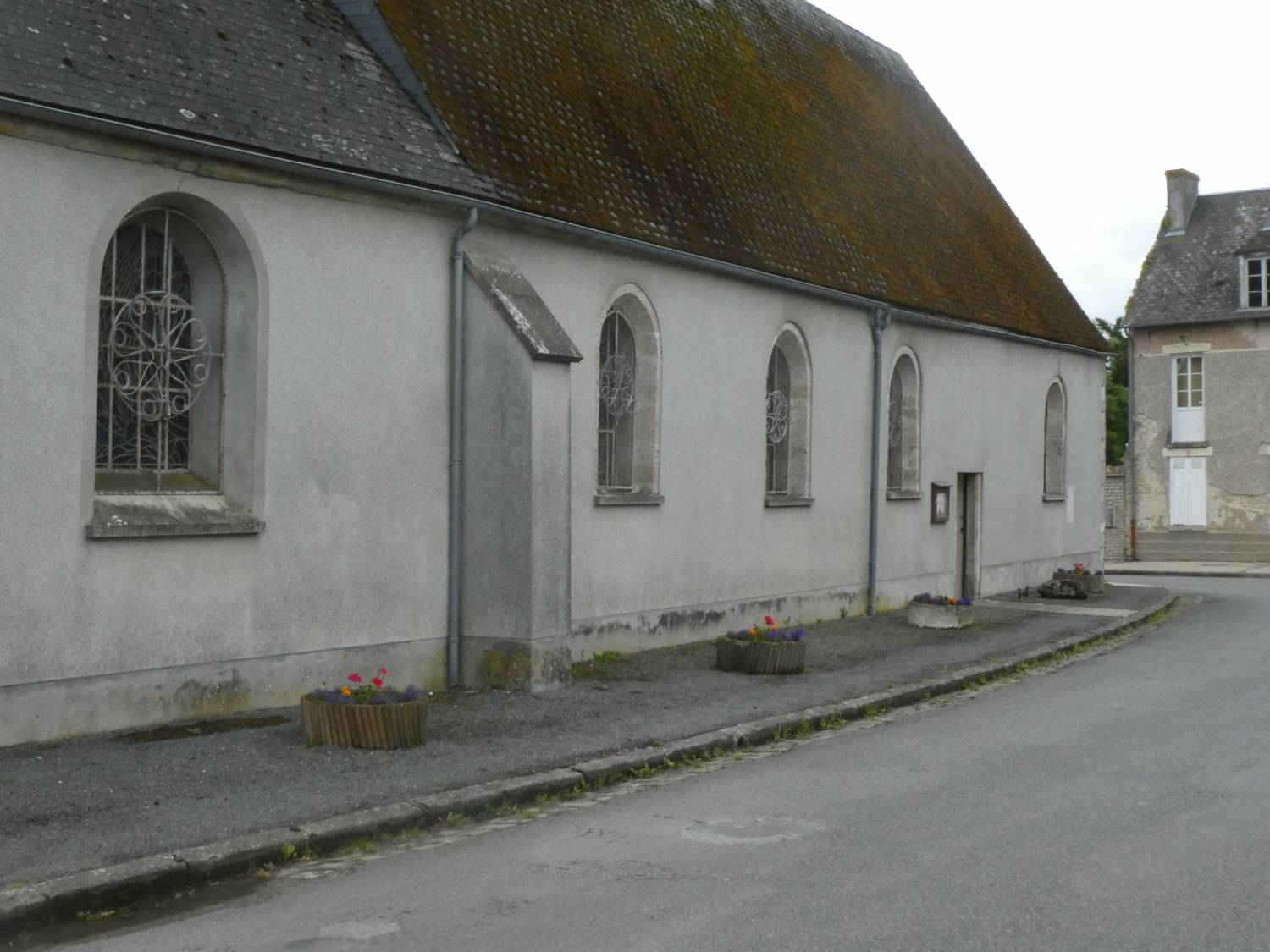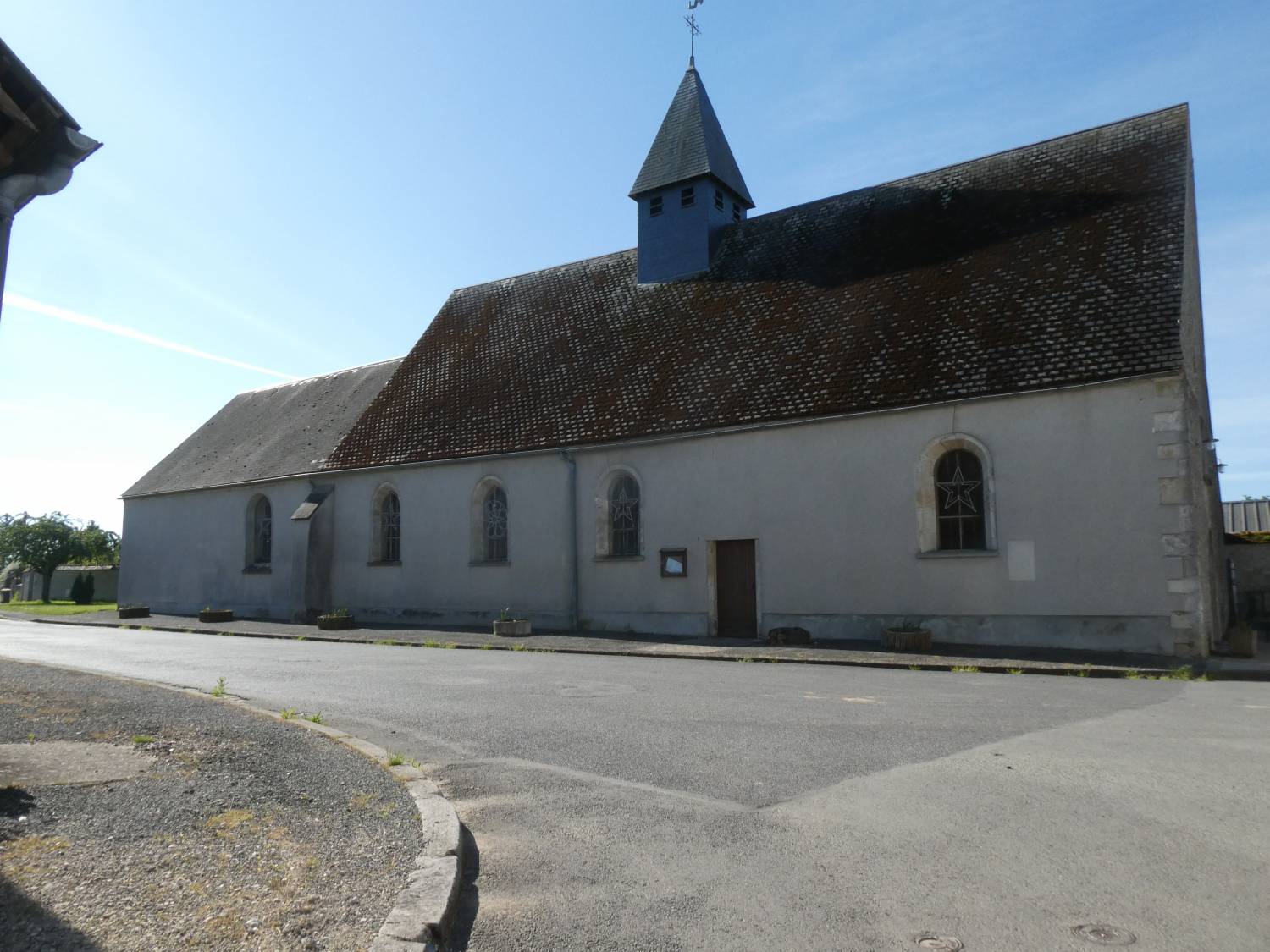Autrefois chapelle du château, elle fut érigée en paroisse en 1638 et fut agrandie au cours des XVIIème et XVIIIème siècles pour constituer son organisation actuelle : une nef prolongée d’un chœur à chevet plat, un bas-côté Sud prolongé par une chapelle, un petit clocher sur la nef et une sacristie (déplacée vers 1930).