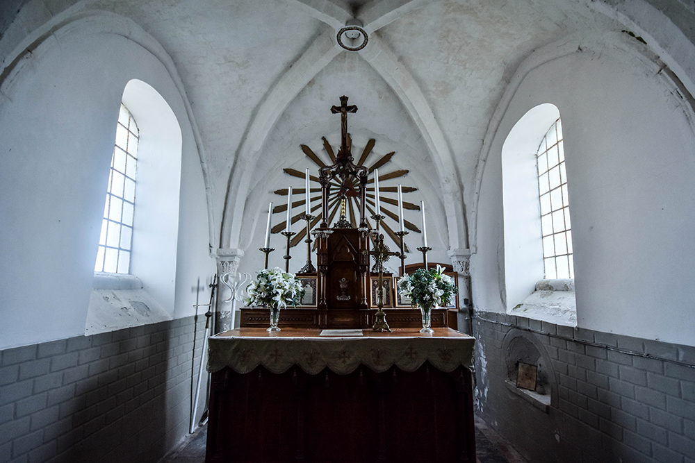 Selon les témoignages actuels, la nef était couverte de bois et la couverture fut réalisée à l’aide de tôles galvanisées à la suite des dégradations entraînées par le temps et les bombardements d’installations allemandes lors de la seconde guerre mondiale. Cette couverture fut peu opérationnelle et montra rapidement des défauts: infiltrations d’eau importantes entraînant la dégradation des bois. Elle prenait la place d’une couverture en ardoises dont certaines voliges sont conservées. Une nouvelle couverture en ardoises losangées de fibro-ciment et un plafond en plaques de plâtre prirent place dans la nef. Les couvertures de tuiles plates du chœur et de la sacristie furent reprises en tuiles mécaniques rouges. Ces couvertures ont été restaurées en ardoises naturelles et les planchers bois rétablis dans la nef.