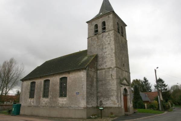 Le clocher présentait effectivement une implantation en tour-porche. Il devait être muni, comme le montre les albums d’un chemin de ronde et d’une flèche en pierre. On comprend alors mieux que les villageois y aient trouvé refuge au XVIème siècle lors des troubles opposant la France et l’Empire de Charles Quint. Une enquête fiscale précise le témoignage des villageois en 1545 : « Sy aurait leglise dudict lieu pendant que le camp estait devant hesdin este assiegee et pillee de leure bestiaulx et vaches quilz avoyet rethirez en icelle eglise en gran nombre et daulcunes illecq bruslees trop bien que les hommes Illecq es tans se sauverent au clocher lequel lesdictz franchois ne puirent gaingne pour ceste fois. Mais tot apres et lors que le camp estait audict Pernes ladicte eglise fut de rechief pillee et les cloches d icelle emportee ». On comprend alors mieux que la cloche actuelle porte la date de 1562.