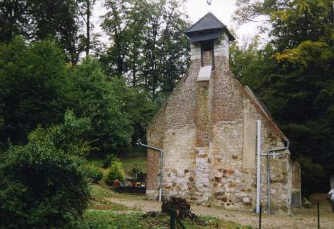 L’église Saint Clément de Fontaine les Hermans est d’implantation ancienne quoique l’on ne possède que peu d’éléments sur la construction médiévale. Elle est située sur le haut du village au sud par rapport au cours d’eau marquant l’axe principal des constructions de l’agglomération. Le témoin le plus ancien de cette construction est la gouache des albums de Croy, au début du XVIIème siècle. Cette gouache présente un point de vue depuis le nord, privilégiant la représentation du manoir qui fut reconstruit. L’église est pourtant mise en valeur. Elle était composée d’une tour-porche couverte par une flèche en pierre à croche et prolongée par une nef couverte en tuiles. Le chœur n’est pas identifiable sur cette représentation. Le commentaire des albums précise que si le manoir ne pose pas de difficulté, il est possible de s’interroger sur la représentation de l’église qui ne semble pas être celle du village. Pourtant l’analyse archéologique des vestiges et constructions démontre bien qu’il s’agit du même édifice, profondément refondu après le XVIIème siècle.