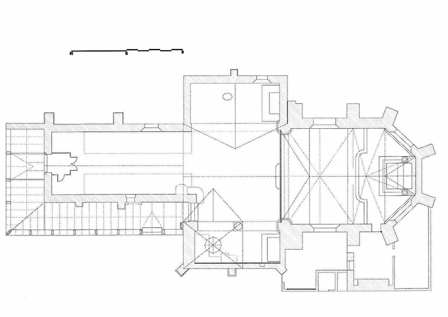 L’église Saint-Denis présente un plan un peu irrégulier. La nef est de modestes dimensions, le chœur est beaucoup plus important et fortement désaxé vers le sud. Entre les deux, se trouve une partie intermédiaire flanquée de chapelles formant transept.