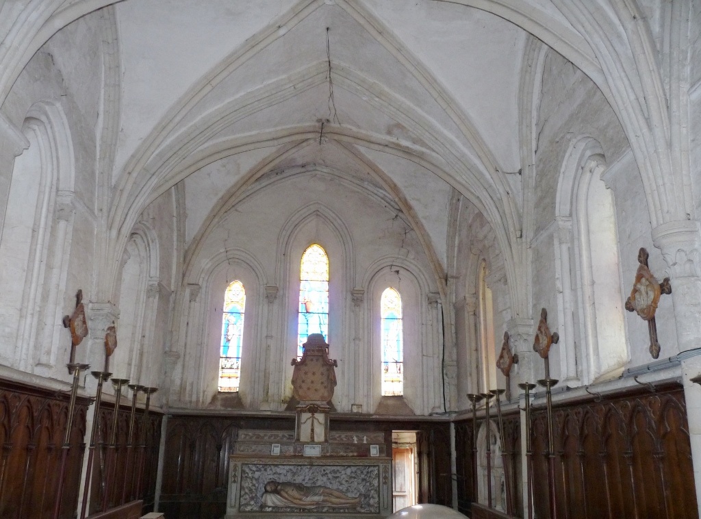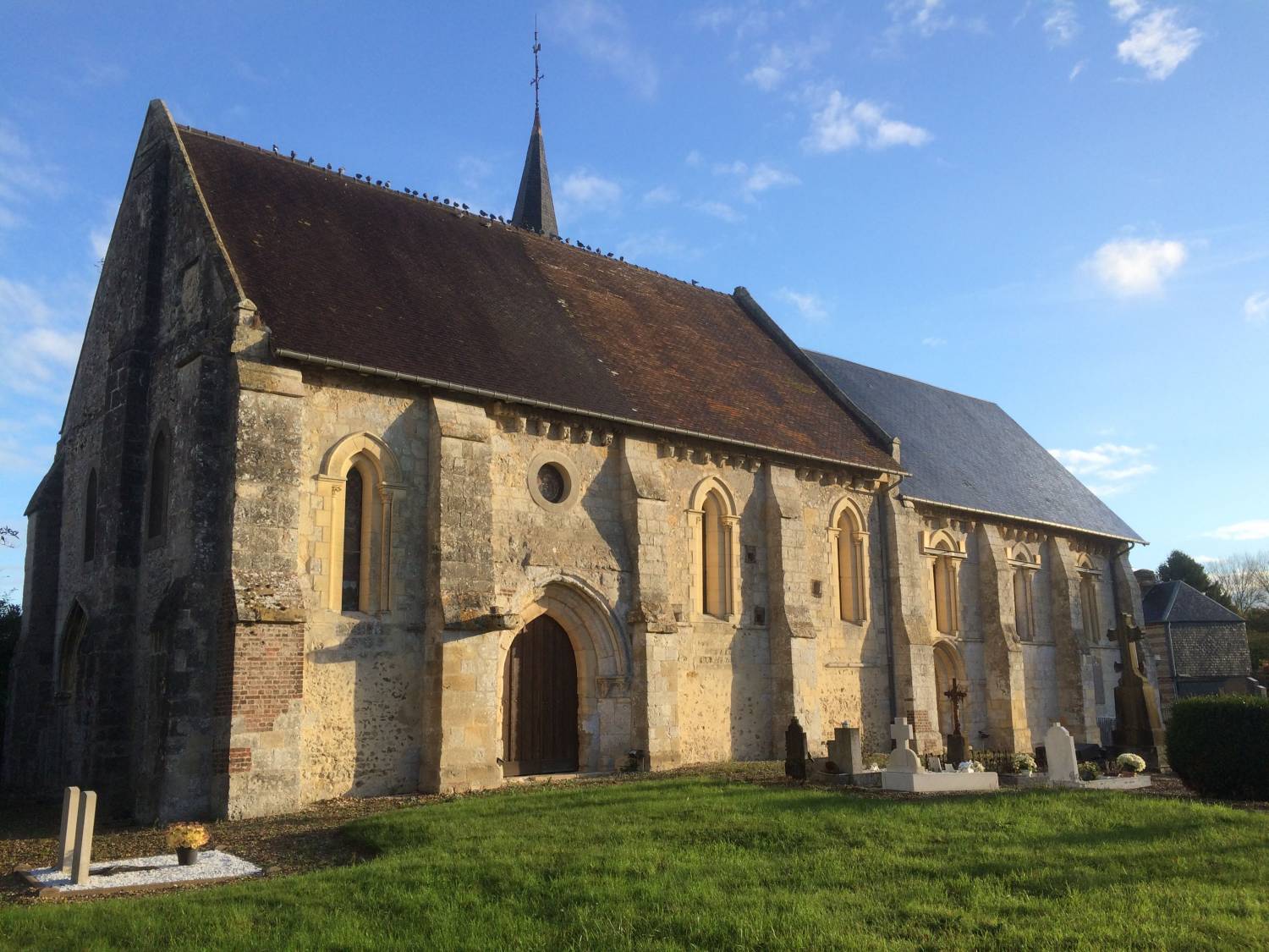 La nef est couverte de tuile, et le choeur, plus bas, d’ardoises.