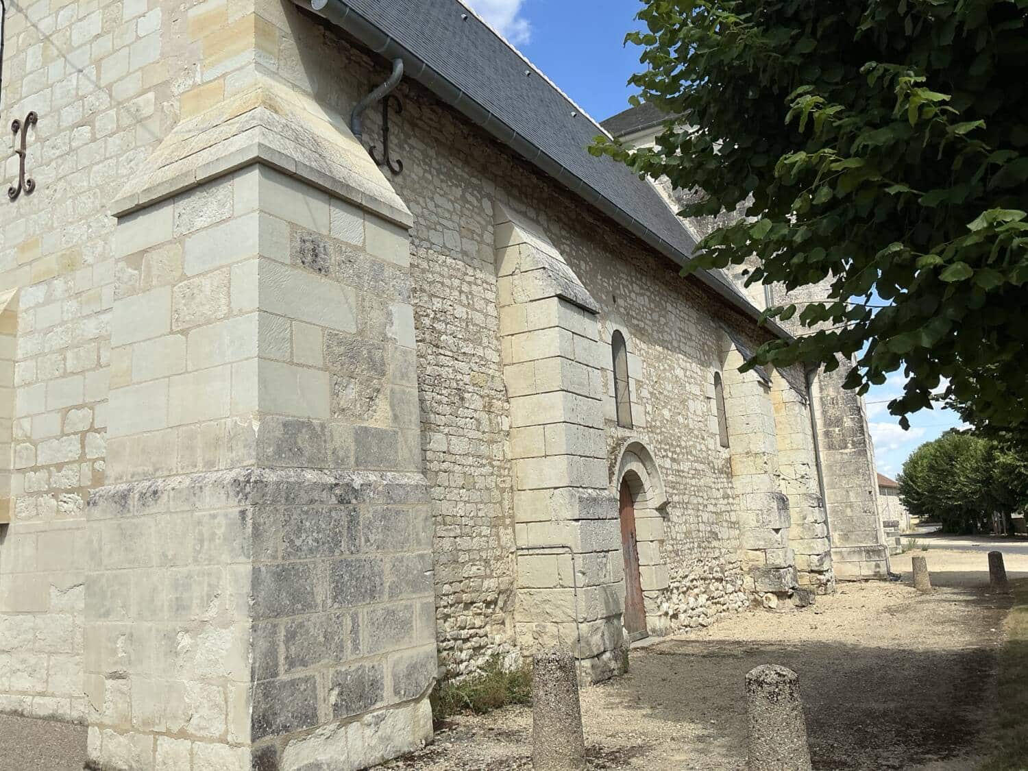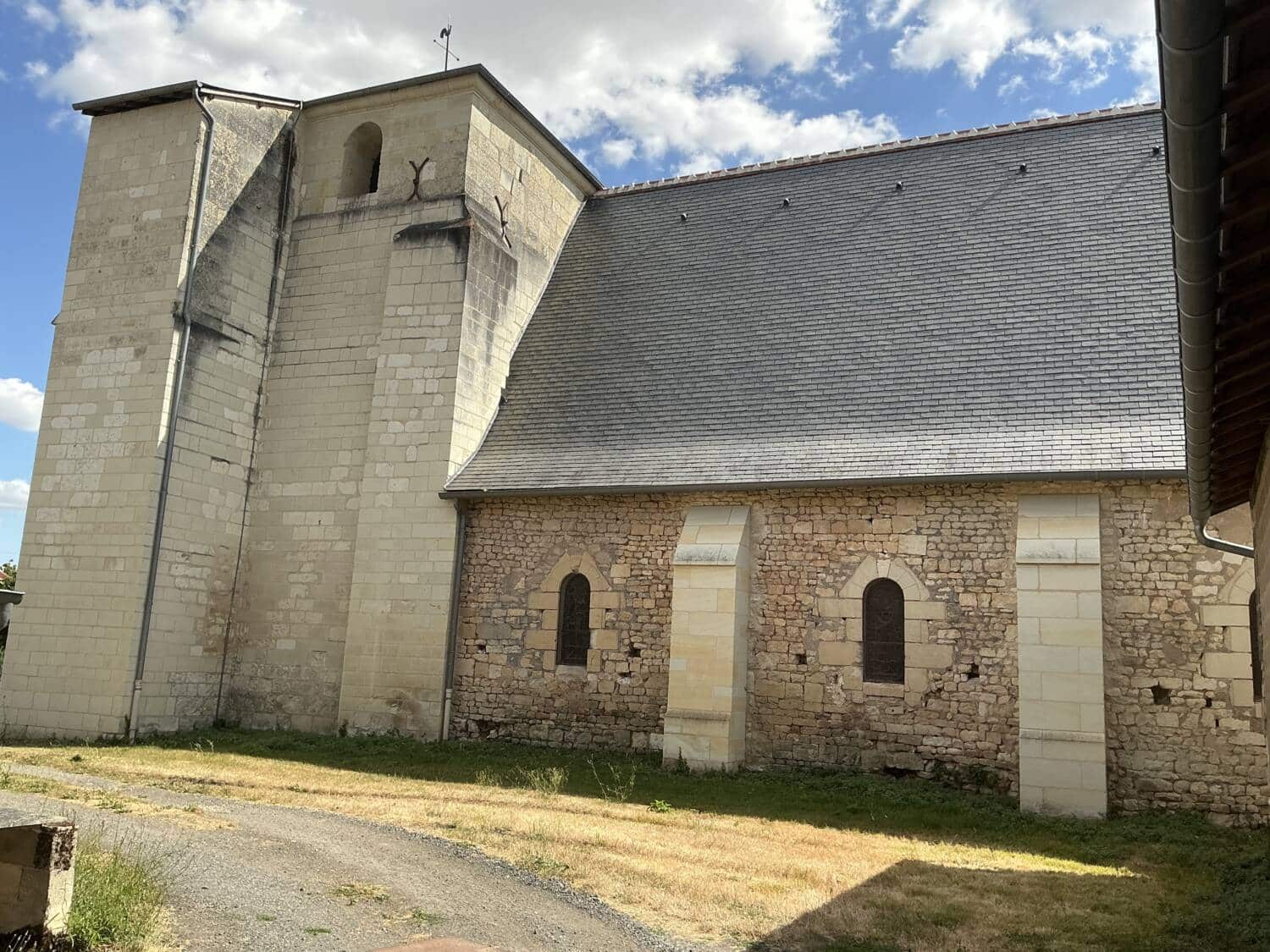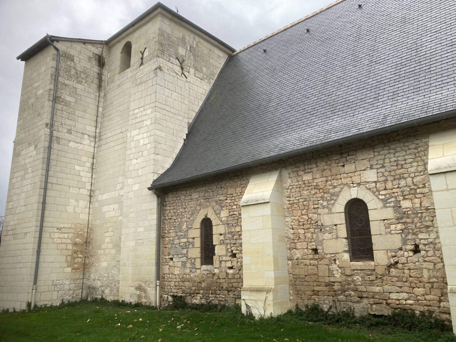 L’église de Claunay aujourd’hui réunie à la commune de La Roche-Rigault, présente un chevet en abside datant du deuxième quart du XIIe siècle, constituant la partie la plus ancienne de l’édifice. Cette abside est voûtée en cul-de-four et était initialement ornée de modillons romans, aujourd’hui restaurés. Le transept, non saillant, également daté du XIIe siècle, est surmonté d’un clocher dont la charpente d’origine a disparu suite à un incendie; la couverture actuelle, à faible pente, a été rendue définitive en 1978. La croisée du transept était à l’origine couverte d’une coupole nervurée, dont subsistent les colonnettes d’angle, témoins des retombées des nervures. La coupole actuelle est une reconstruction légèrement différente de l’originale. La façade occidentale est de style roman, tandis que la nef, unique, est postérieure au reste du bâti. L’édifice conserve également des traces de peintures murales des XVe ou XVIe siècles, notamment une scène de martyre et une litre armoriée encore partiellement visible.