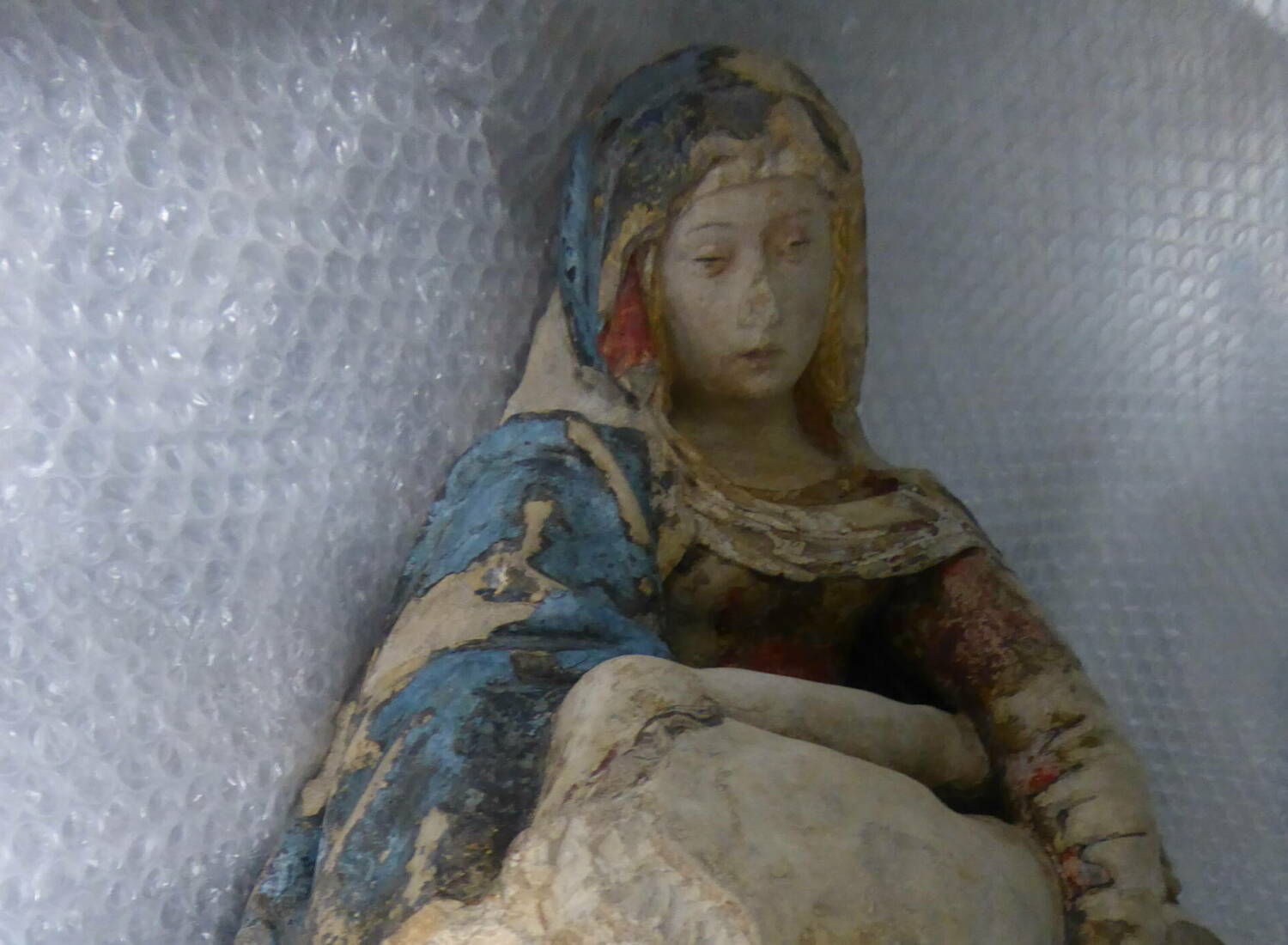 Vos dons permettront le financement du dépoussiérage de la Piéta, d’une étude complémentaire de la pierre et de la pigmentation. Enfin, afin qu’elle soit ensuite conservée dans les meilleures conditions, il convient d’offrir à cette Vierge de Pitié un soclage adapté et une vitrine d’exposition.