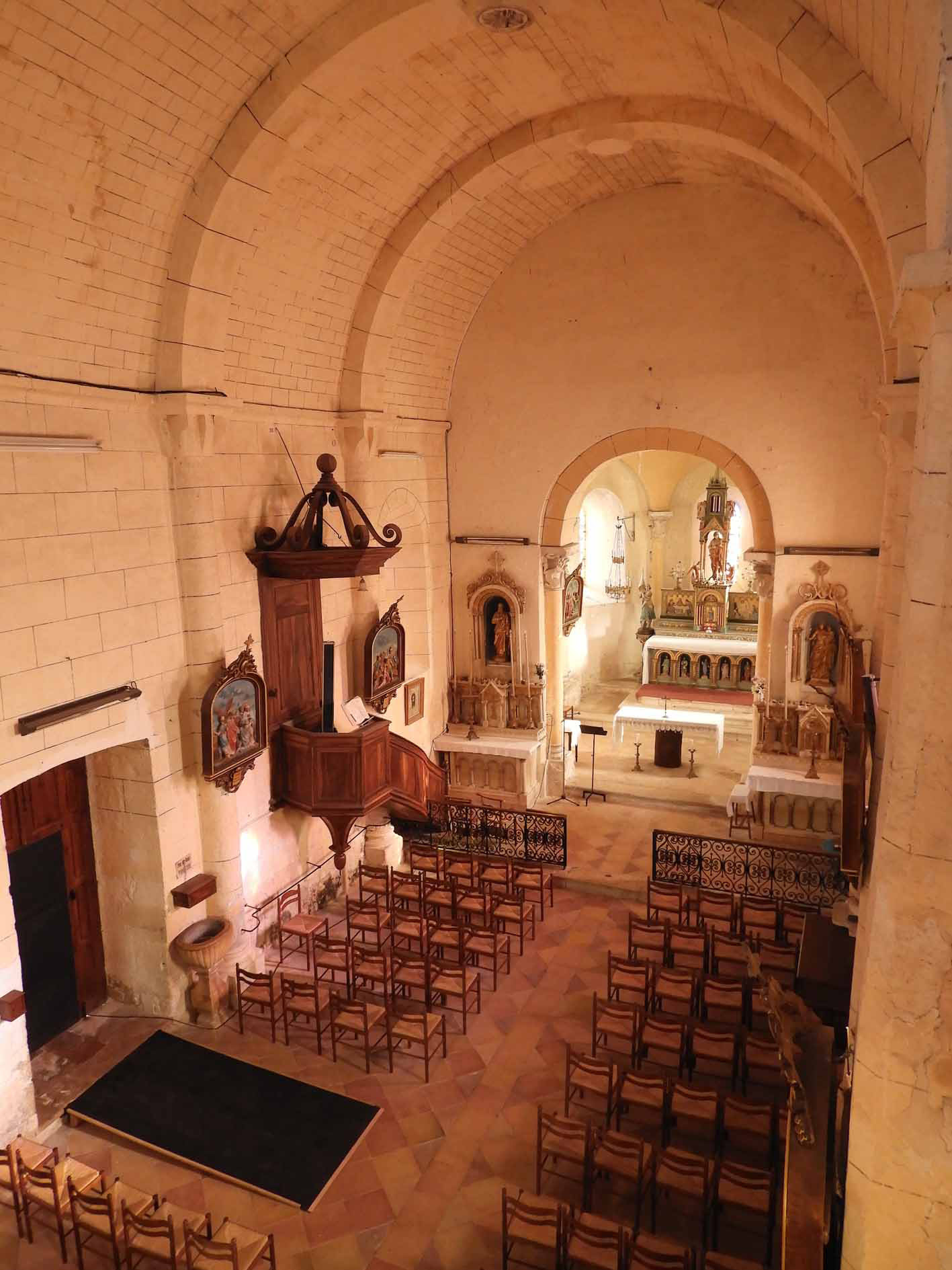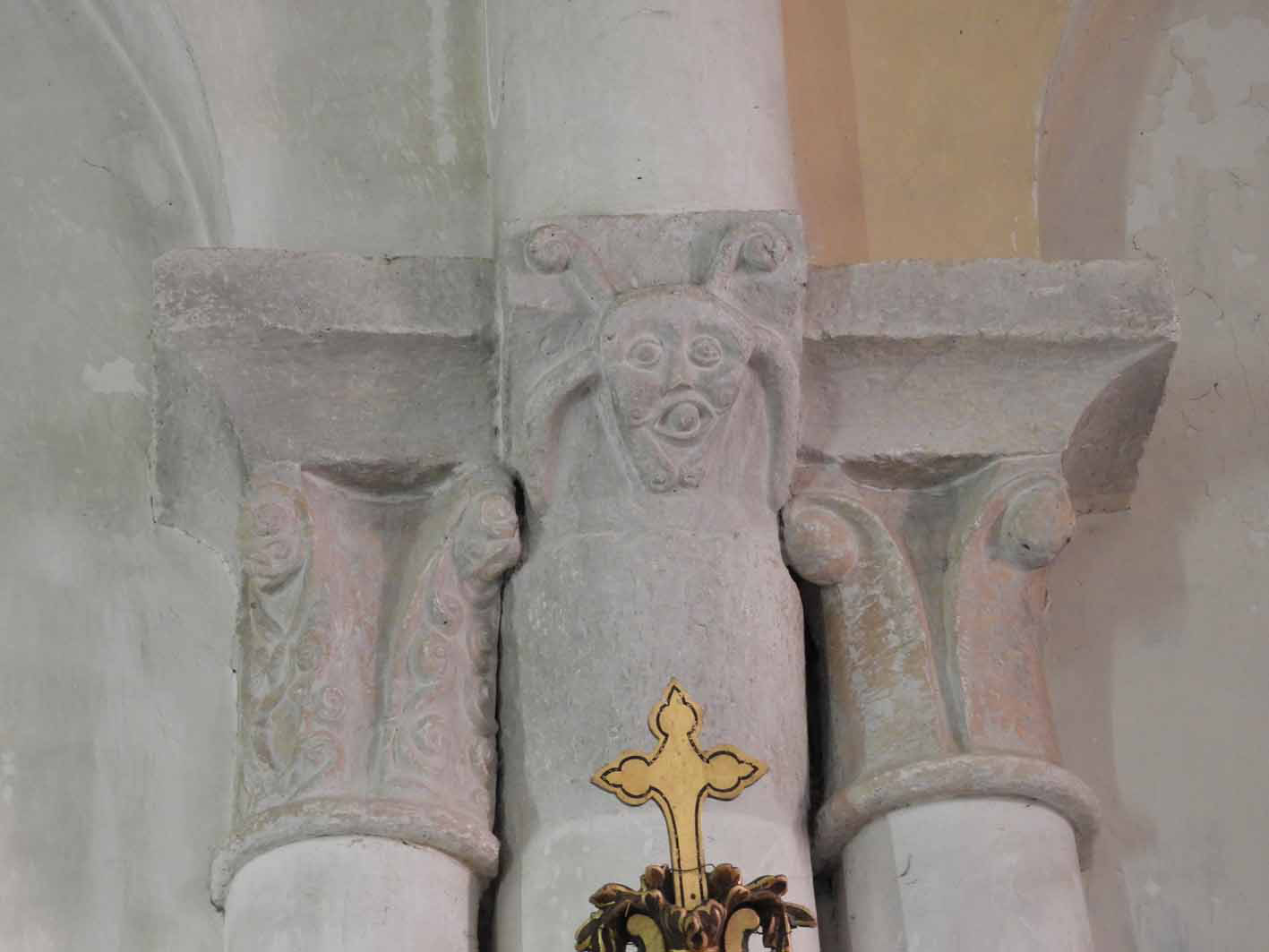 Le décor des chapiteaux confirme l’origine romane de l’église. Des traces de percements primitifs apparaissent sur le mur sud de la nef.