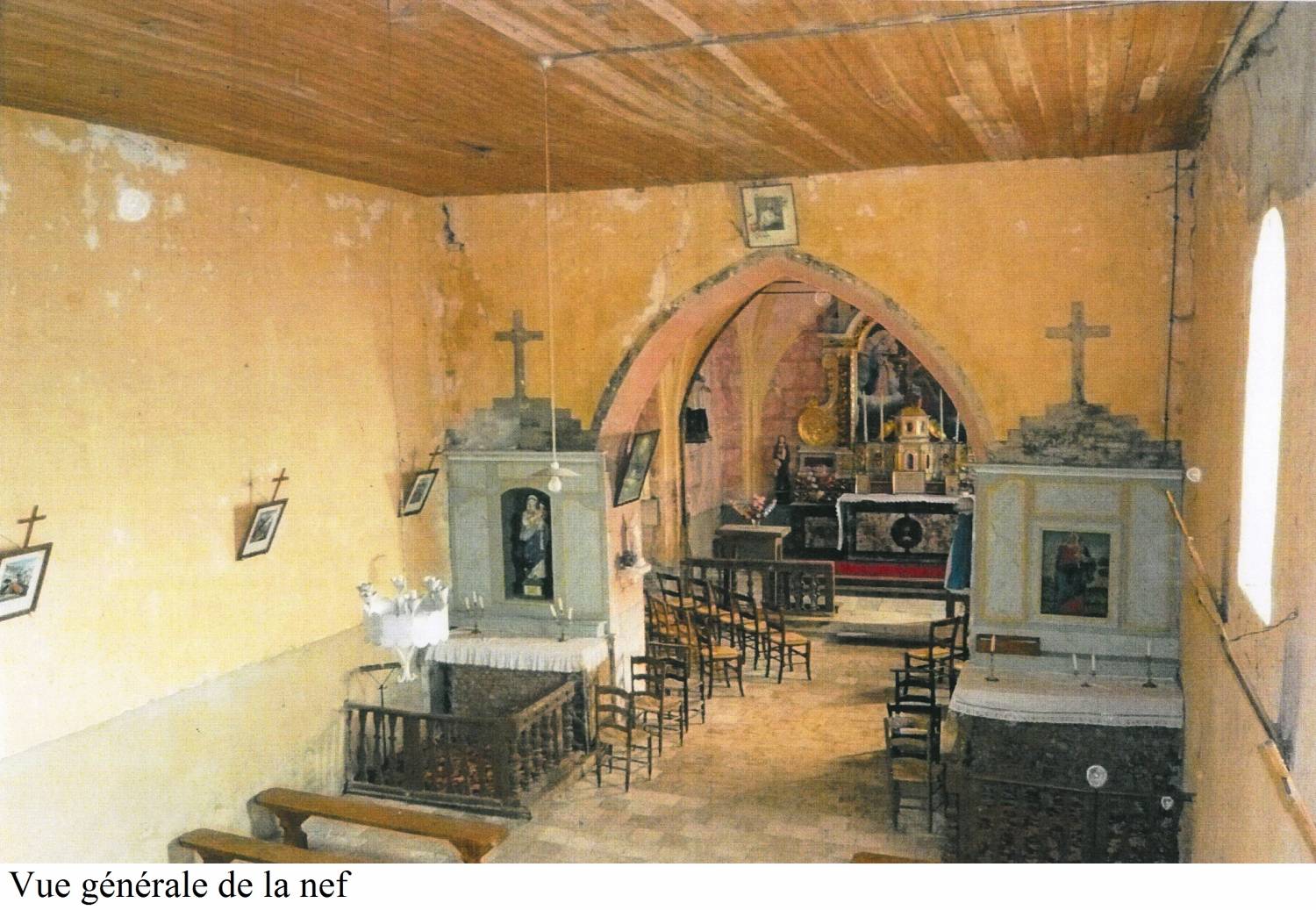 La charpente présentait plusieurs désordres, notamment dans le chœur, où la rupture de pièces l’avait fait basculer sur les voûtes, induisant des poussées néfastes. Par ailleurs la disparition d’une ancienne chapelle au nord avait désorganisé les contrebutements. Et la pose des tirants venait gêner la lisibilité du maître autel de qualité (1770).