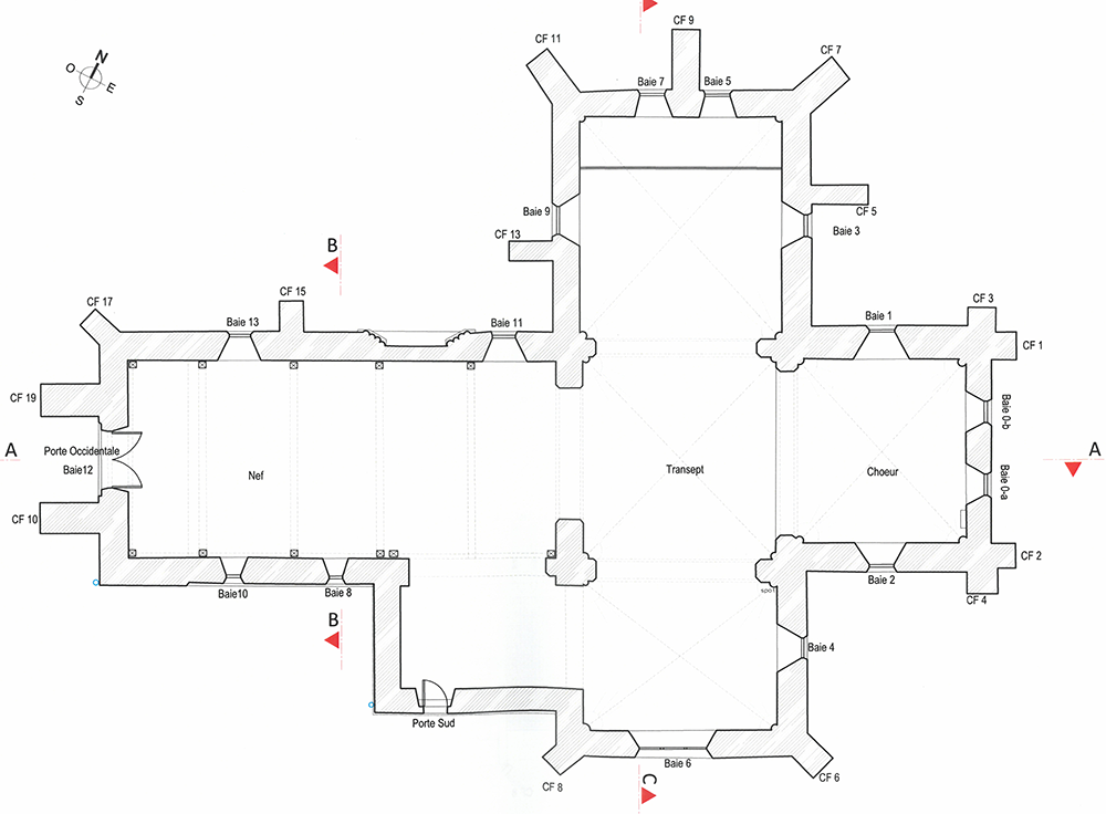 Les voûtes du chœur et du transept datent du XVIe siècle ; l’une des clés de voûte est aux armes du chapitre, celle du chœur porte l’empreinte des trois fleurs de lys de France. Les nervures saillantes et de forme arrondie de la voûte du sanctuaire terminées à leur intersection par une petite rosace, indiquent une construction du XIIIe siècle. Le mur Nord a été percé de grandes fenêtres au commencement du XIIe siècle le clocher reconstruit au XVIIIe siècle.