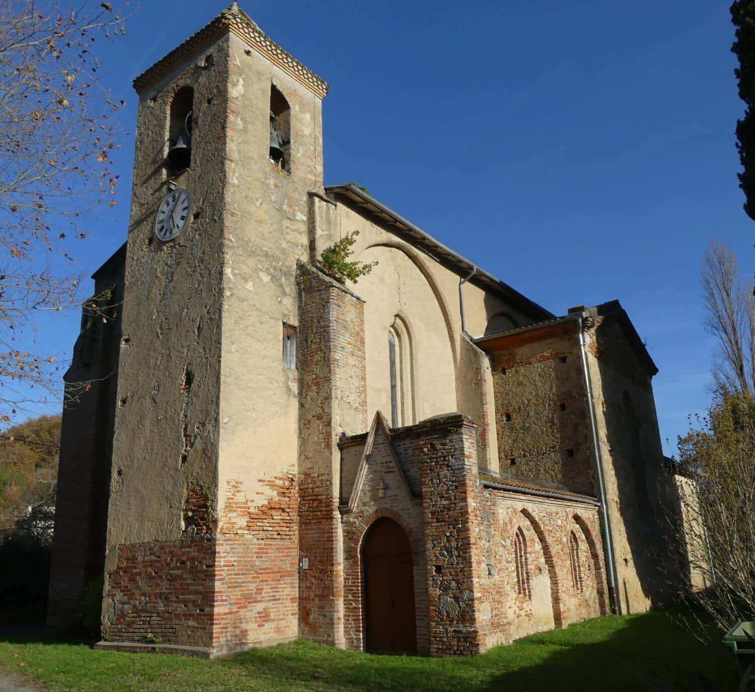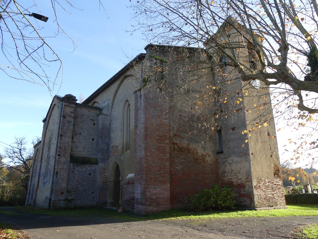 L’église Saint-Laurent s’inscrit dans l’histoire du prieuré éponyme, fondé au XIIe siècle dans le cadre de l’ordre de Fontevraud par Pétronille de Chemillé, puis développé à partir de 1151 sous l’abbesse Longuebrune. Implanté dans un territoire initialement peu structuré, le prieuré connaît un essor notable, accueillant une importante communauté religieuse. L’édifice actuel, construit à la fin du XIIIe ou au début du XIVe siècle sur les vestiges d’une église antérieure, relève du gothique méridional, caractérisé par sa sobriété. Les siècles suivants sont marqués par de nombreuses crises (famines, épidémies, conflits) entraînant le déclin progressif de la communauté. À la Révolution française, le prieuré est supprimé, ses biens sont nationalisés et l’abbatiale du XIIe siècle en grande partie détruite. L’église subsiste néanmoins, malgré des événements destructeurs comme les inondations de 1977. Elle connaît des transformations au XIXe siècle avec l’ajout de chapelles et de sacristies, puis une importante restauration dans les années 1930 sous l’impulsion de l’abbé Carrère, accompagnée d’un riche décor peint réalisé entre 1938 et 1942 par René Gaston-Lagorre. Inscrite au titre des Monuments historiques en 2001, elle constitue aujourd’hui un élément patrimonial et culturel majeur pour la commune animé par son association patrimoniale.