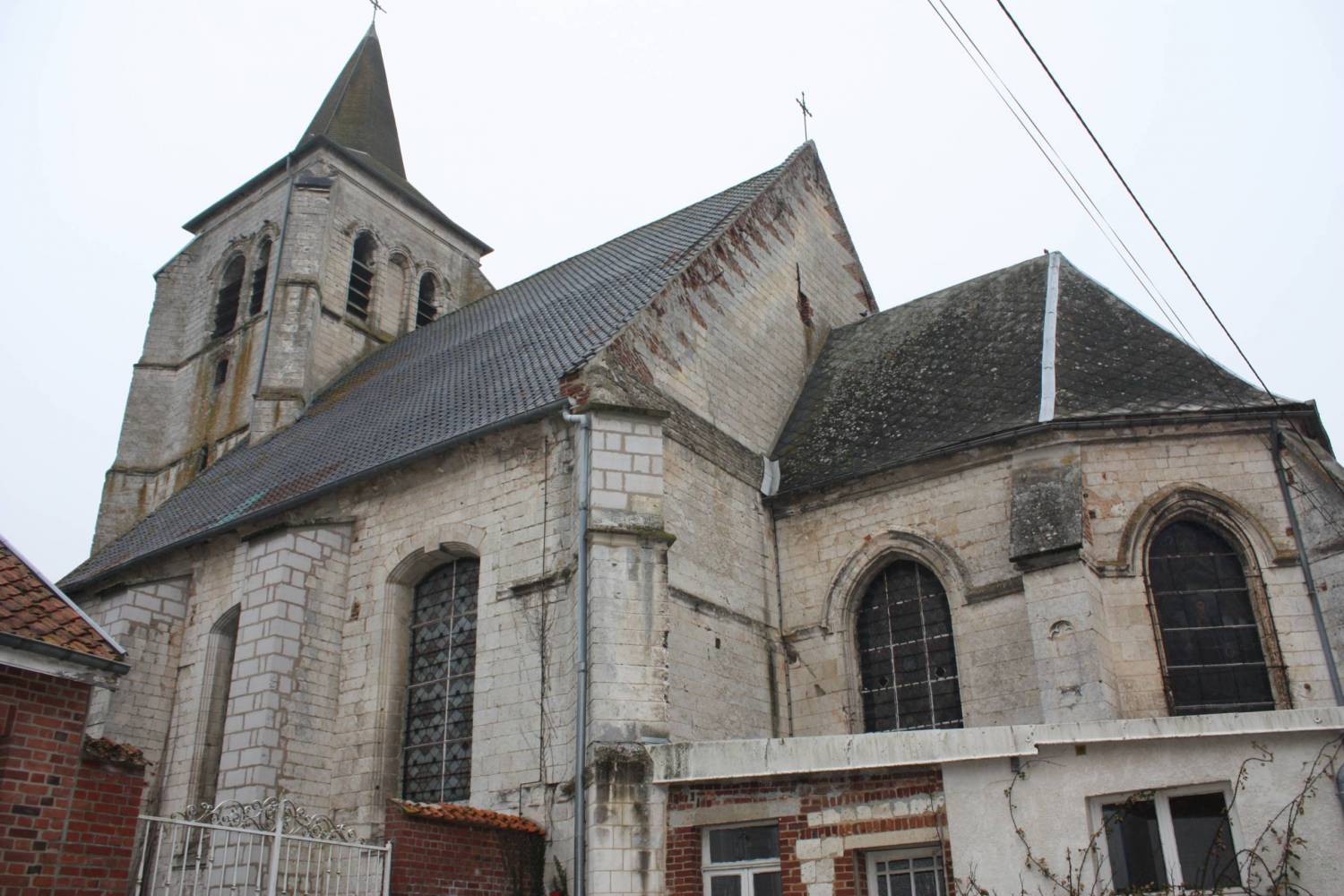 L’église Saint-Léger est composée une tour clocher massive, possédant des contreforts diagonaux et des voûtes caractéristiques d’un gothique tardif. Il s’agit d’un clocher refuge dans lequel deux niveaux sont aménagés d’une cheminée, afin d’accueillir le maximum de personnes lors d’attaques. Le clocher est construit en craie, pierre de taille locale.