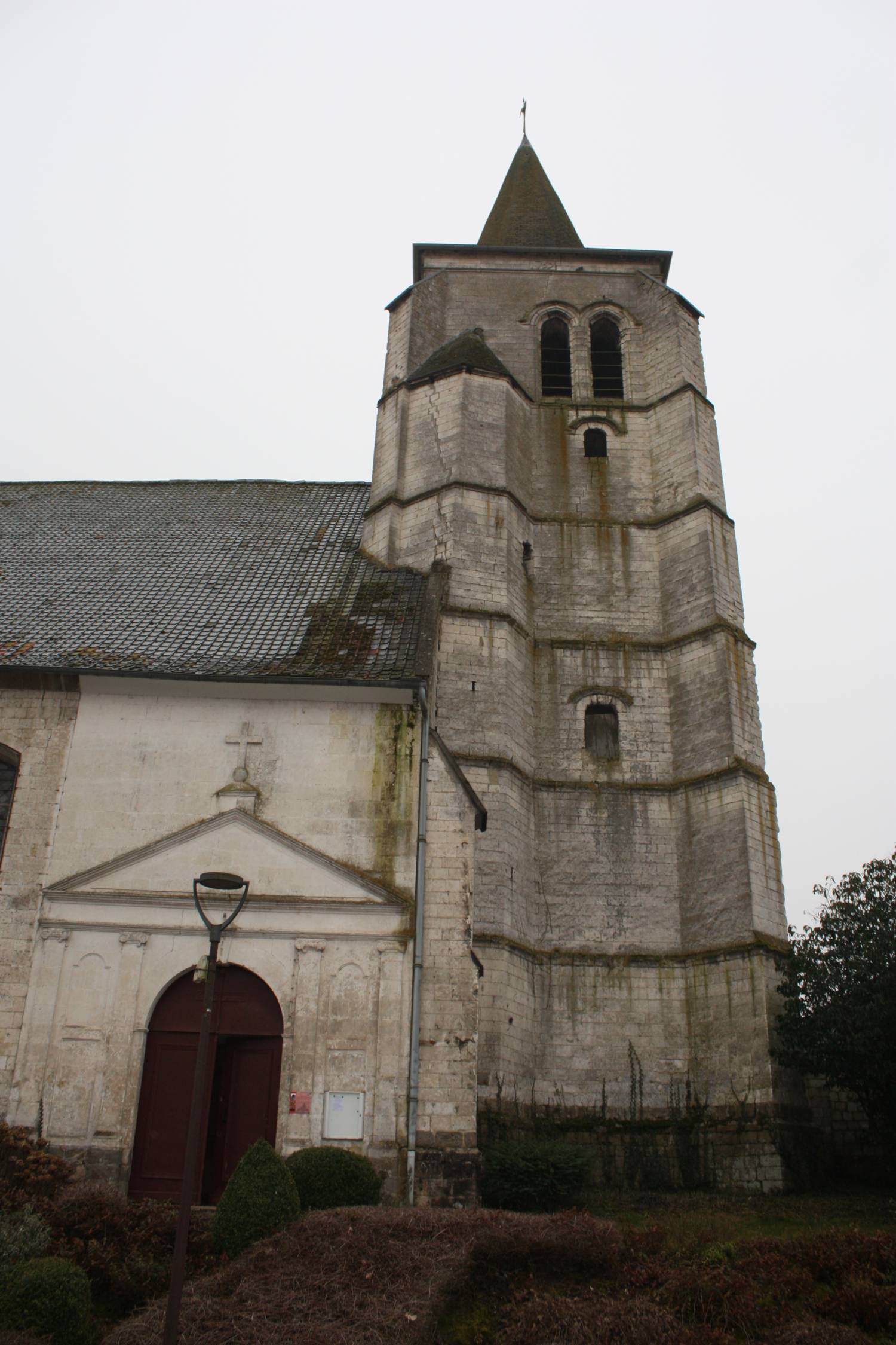 L’église Saint-Léger a été construite entre le XIVe et le XVIe siècle. Dans l’Album de Croÿ (1605), on peut apercevoir une balustrade à créneaux au sommet de la tour, protégeant le chemin de ronde où les guetteurs surveillaient les environs du village. Ce chemin a été détruit lors de la restauration de la tour du XVIIIe siècle. En effet, l’église a vu son plan être modifié au XVIIIe s., comme l’indiquent les dates de 1737 et 1759 gravées sur le clocher.