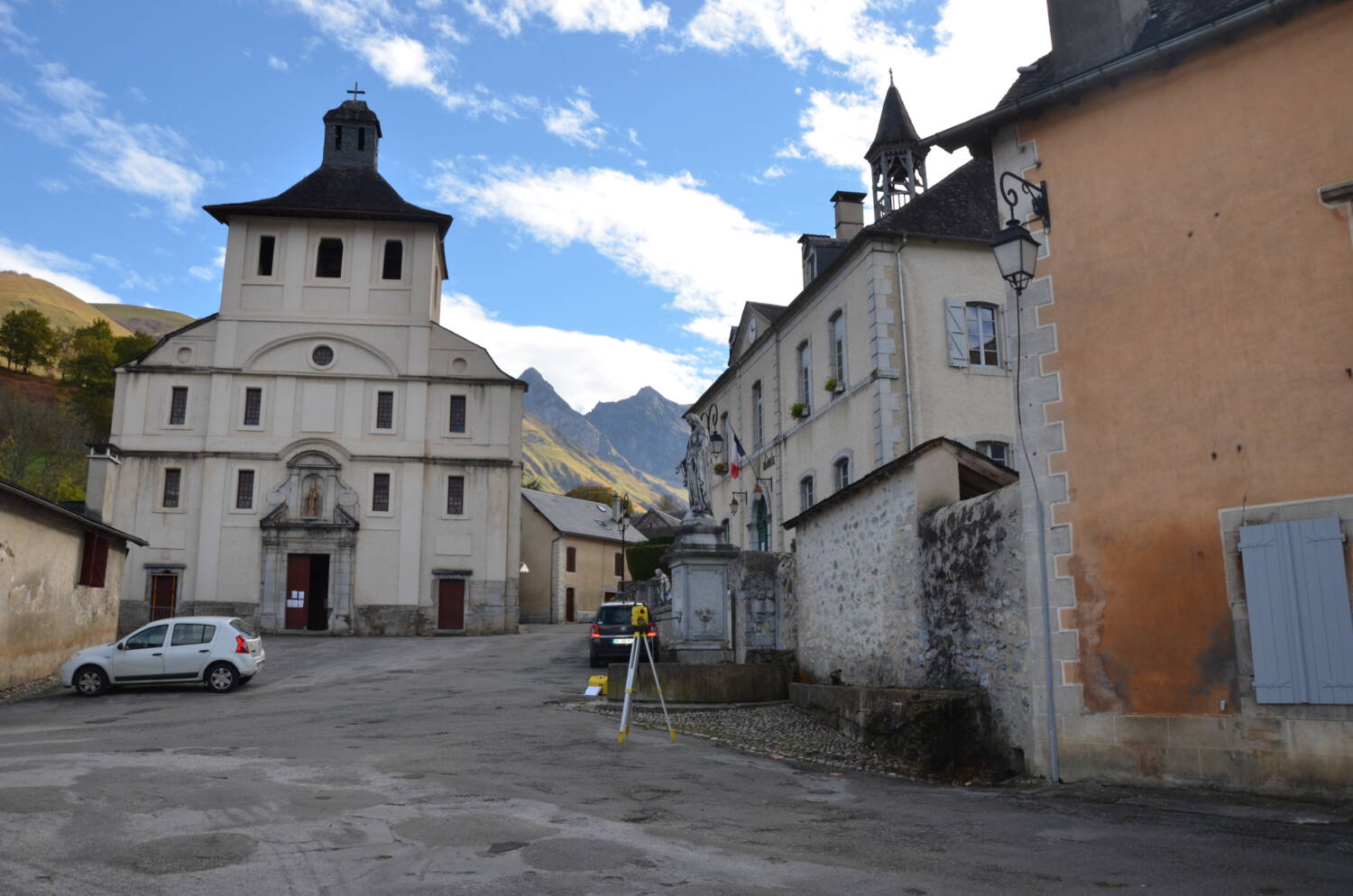 L’église est bâtie sur le côté Est de la place du village, à proximité immédiate de la mairie actuelle. La façade principale Ouest de l’église ouvre sur la petite place, qui fût, jusqu’à la fin du XIXème siècle, en grande partie occupée par l’ancien cimetière.