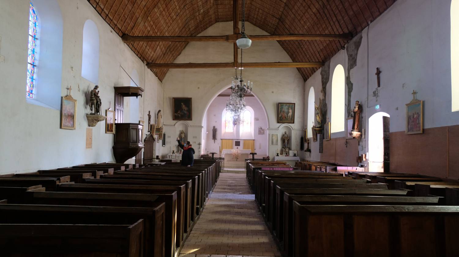 Au XIXe siècle, le caquetoire fut détruit (en 1867), et des travaux de démolition et d’aggrandissement prennent lieu dans l’église (en 1878) : allongement de la nef d’une travée au dépend du choeur ; construction de la sacristie et du local chaufferie ; mise en oeuvre de quelques pierres du caquetoire dans le sol de l’église à l’entrée Ouest.