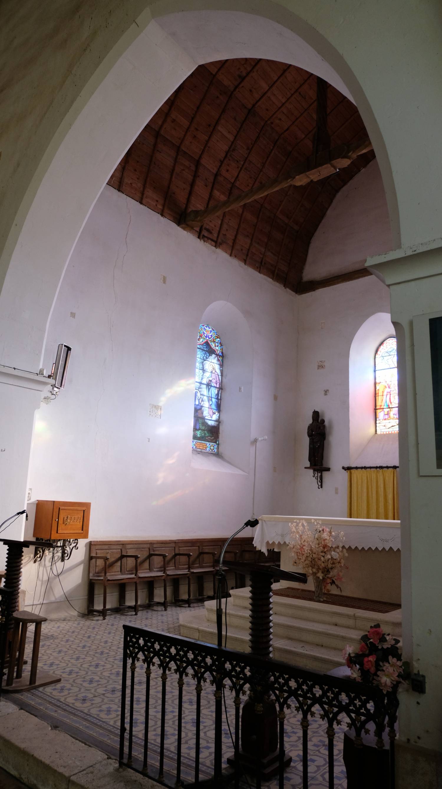 Au XVe et XVIe siècle, elle fut aggrandie afin d’accueillir le choeur et une pièce juxtaposée (une sacristie ?). Dû à cet agrandissement, le mur Est subit un remaniement afin d’ouvrir un accès au choeur.
