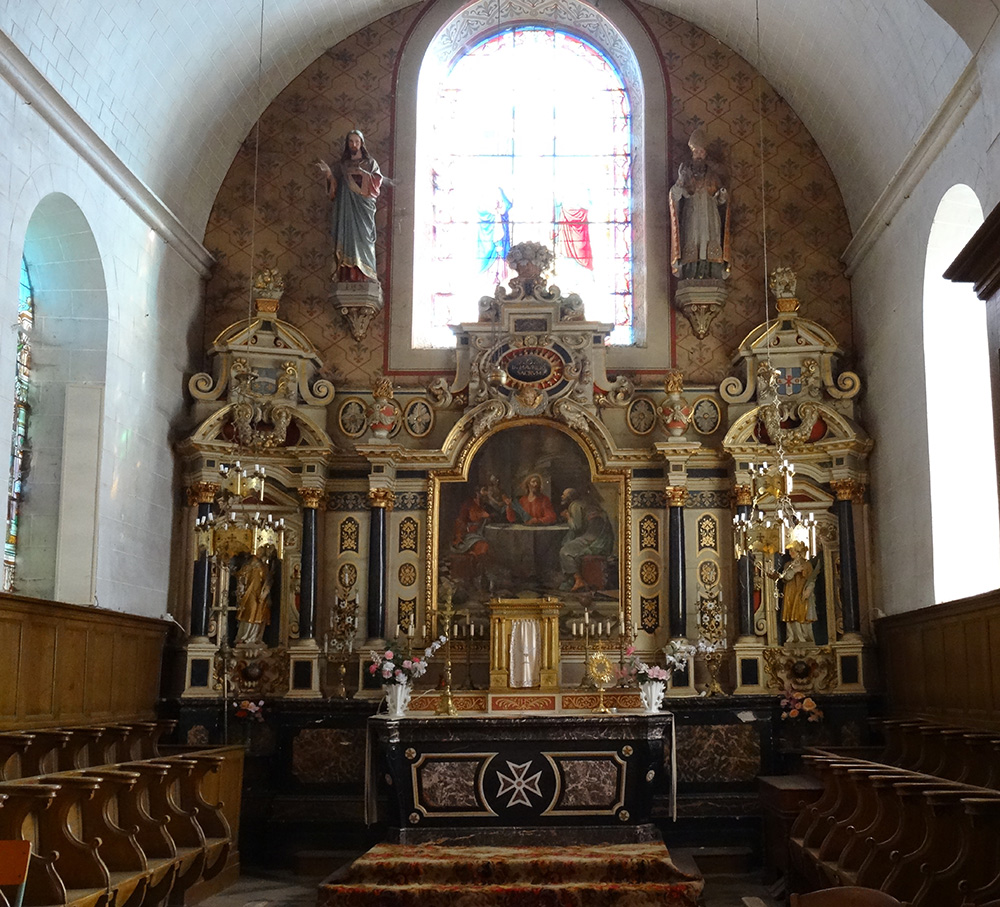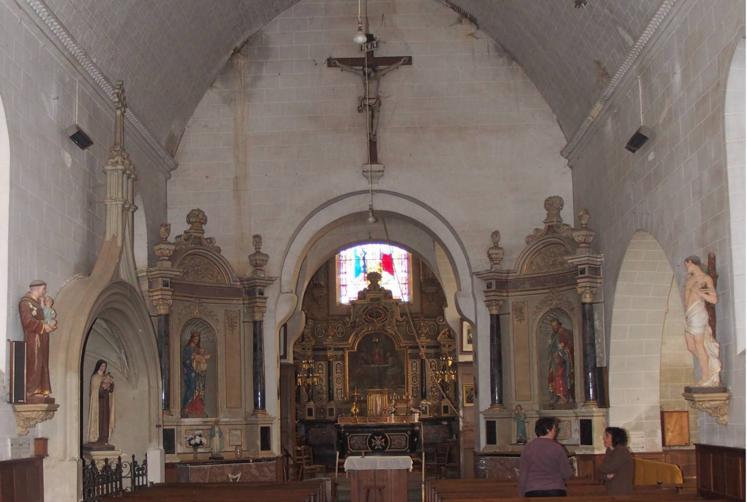 La nef est ouverte sur deux travées, au sud, par une chapelle voûtée d’ogives.