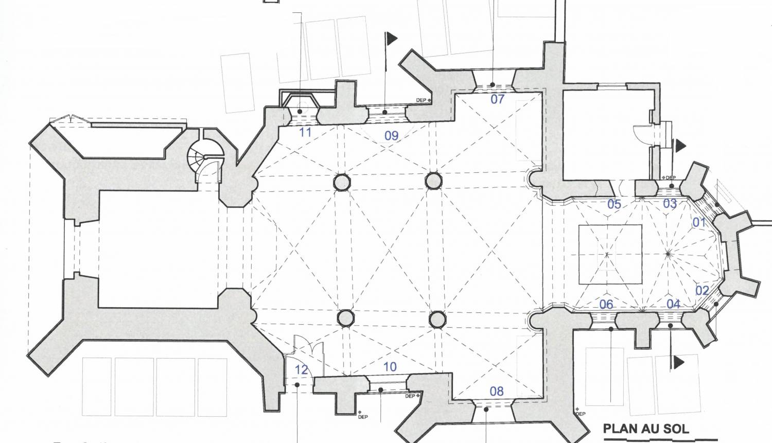 A la suite des dégâts causés par la Seconde Guerre Mondiale, d’importants travaux furent entrepris en 1950: la partie sommitale de la tour fut modifiée avec la pose d’un chéneau en béton, une nouvelle flèche en béton reposant sur des madriers de béton posés sur la structure ancienne en pierre de la tour (en remplacement de la flèche de charpente couverte d’ardoises). Un chaînage en béton armé fut posé à cette occasion.