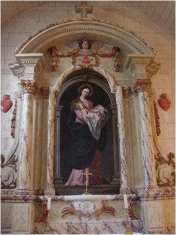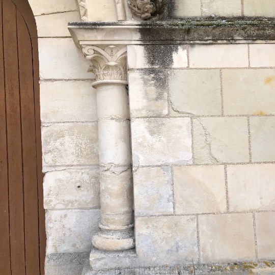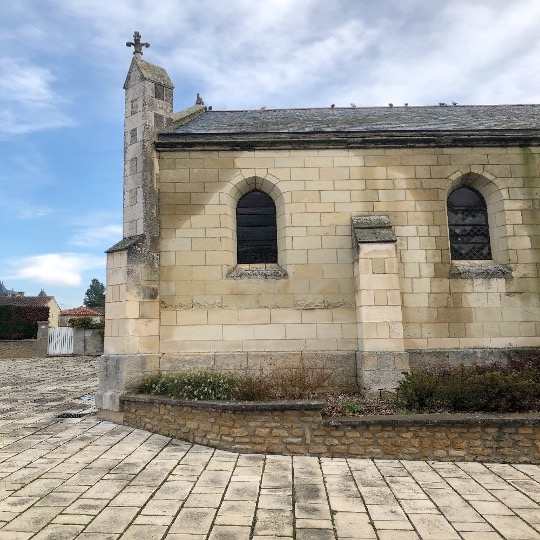 L’Eglise comporte une belle porte latérale clavée sur le mur gouttereau sud. Elle est surmontée d’une table gravée rappelant l’attachement de l’Eglise de Bouillé-Loretz à l’Eglise Catholique en pleine « contre-réforme » avec pour date 1602.