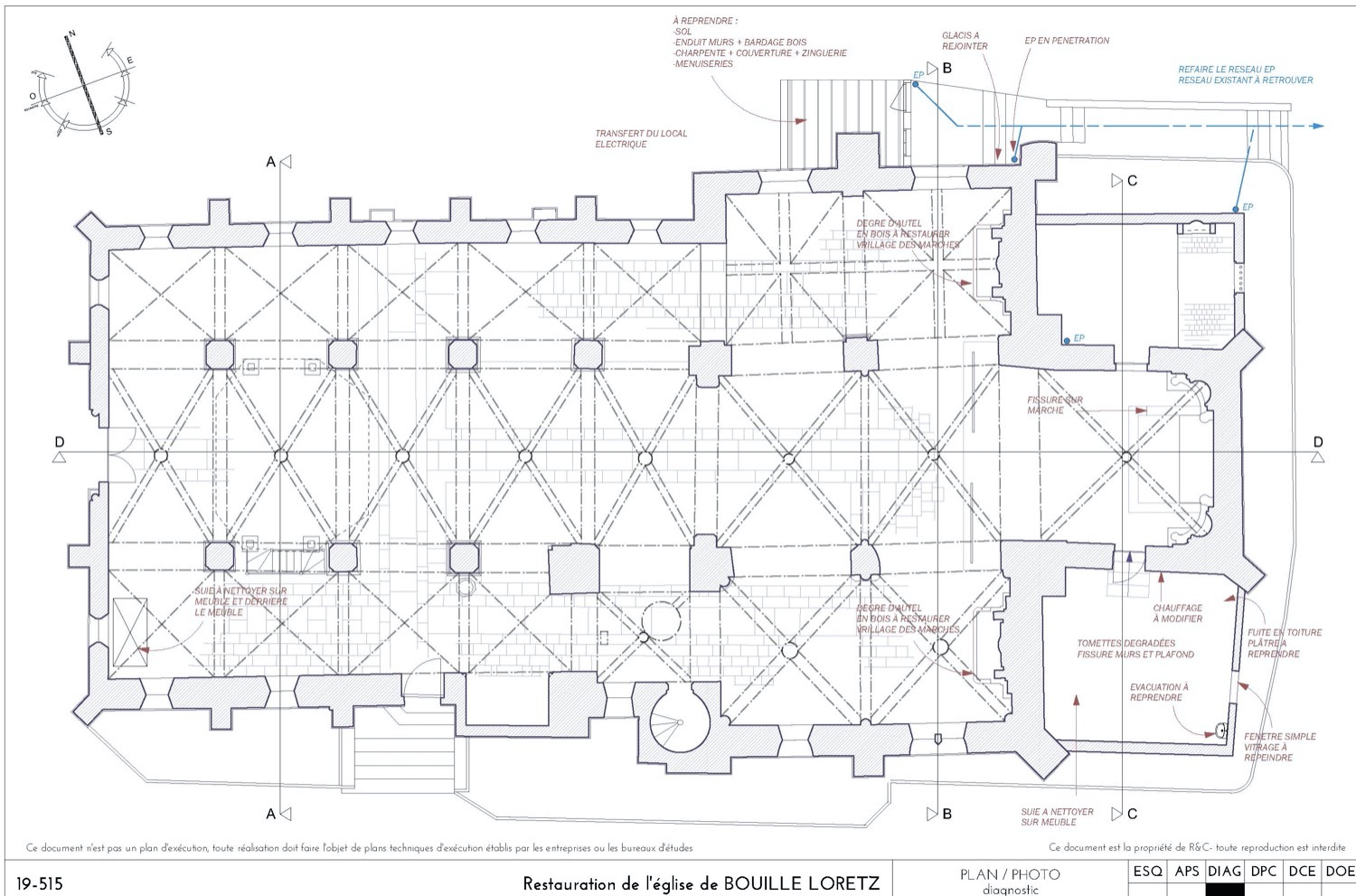 Enfin, un clocher de pierre caractéristique est décrit dans un mémoire de restauration de 1898 par l’architecte du département.