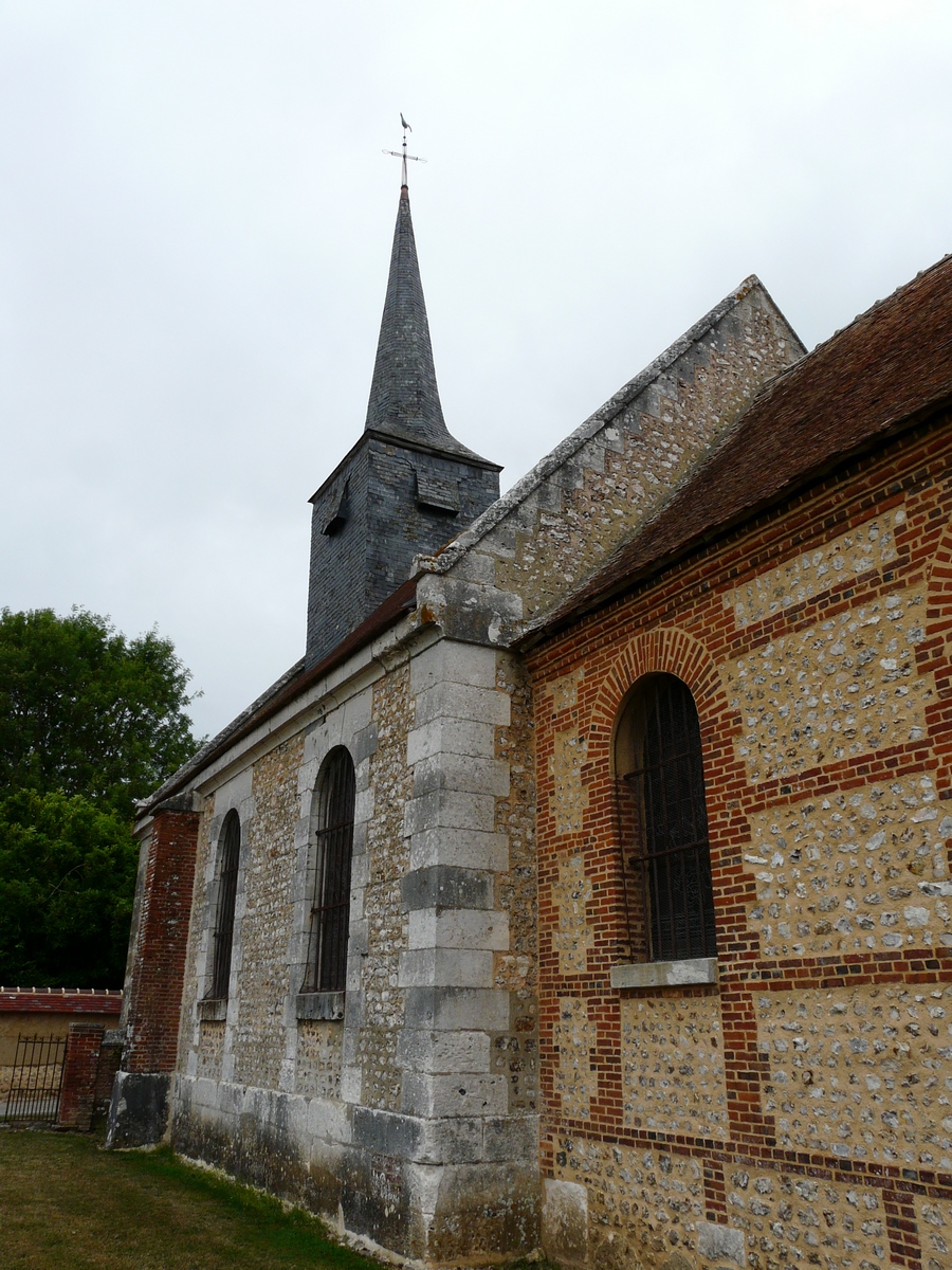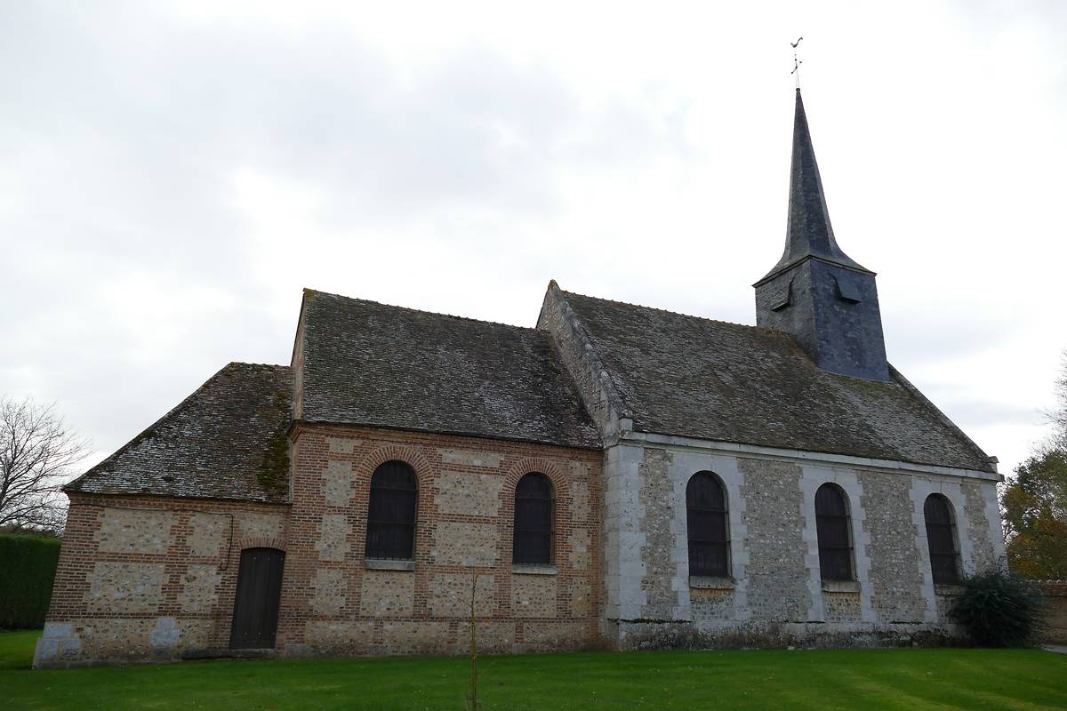 L’église présente une nef en silex taillé et pierre (XVIIIe siècle), divisée en trois travées, chacune éclairée par de hautes baies cintrées, et un chœur rectangulaire en briques et silex (XIXe siècle).