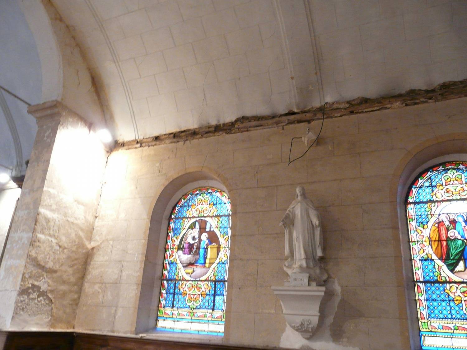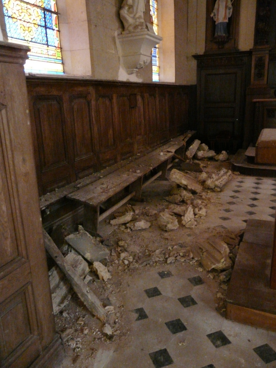 Malheureusement, la chute d’une corniche intérieure, en février 2016, a conduit la mairie à prendre un arrêté de péril et à interdire, momentanément, l’accès à l’édifice. La cause de cet effondrement : un écartement des murs dû à une poussée de la charpente.