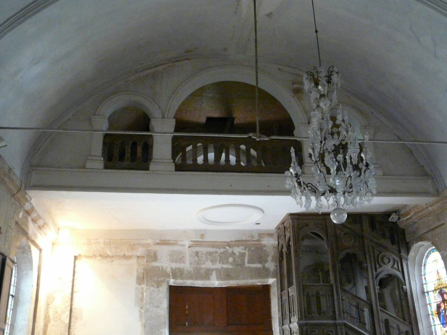 Une tribune, au-dessus de la grande porte d’entrée, fut réalisée, en septembre 1864, ainsi que l’escalier permettant d’y accéder. Le 28 août 1864, concernant des travaux à effectuer, le maire de Venon écrivait à un architecte :