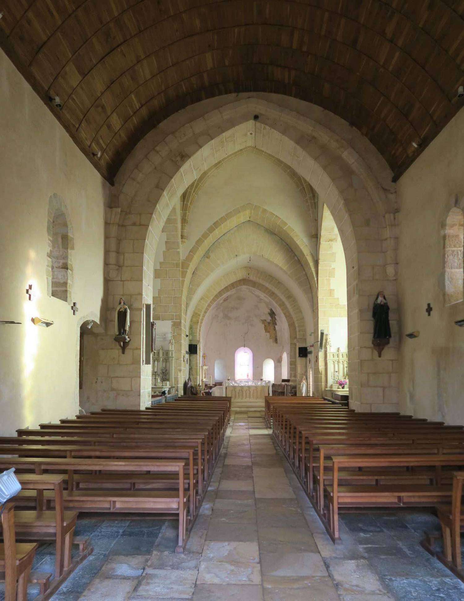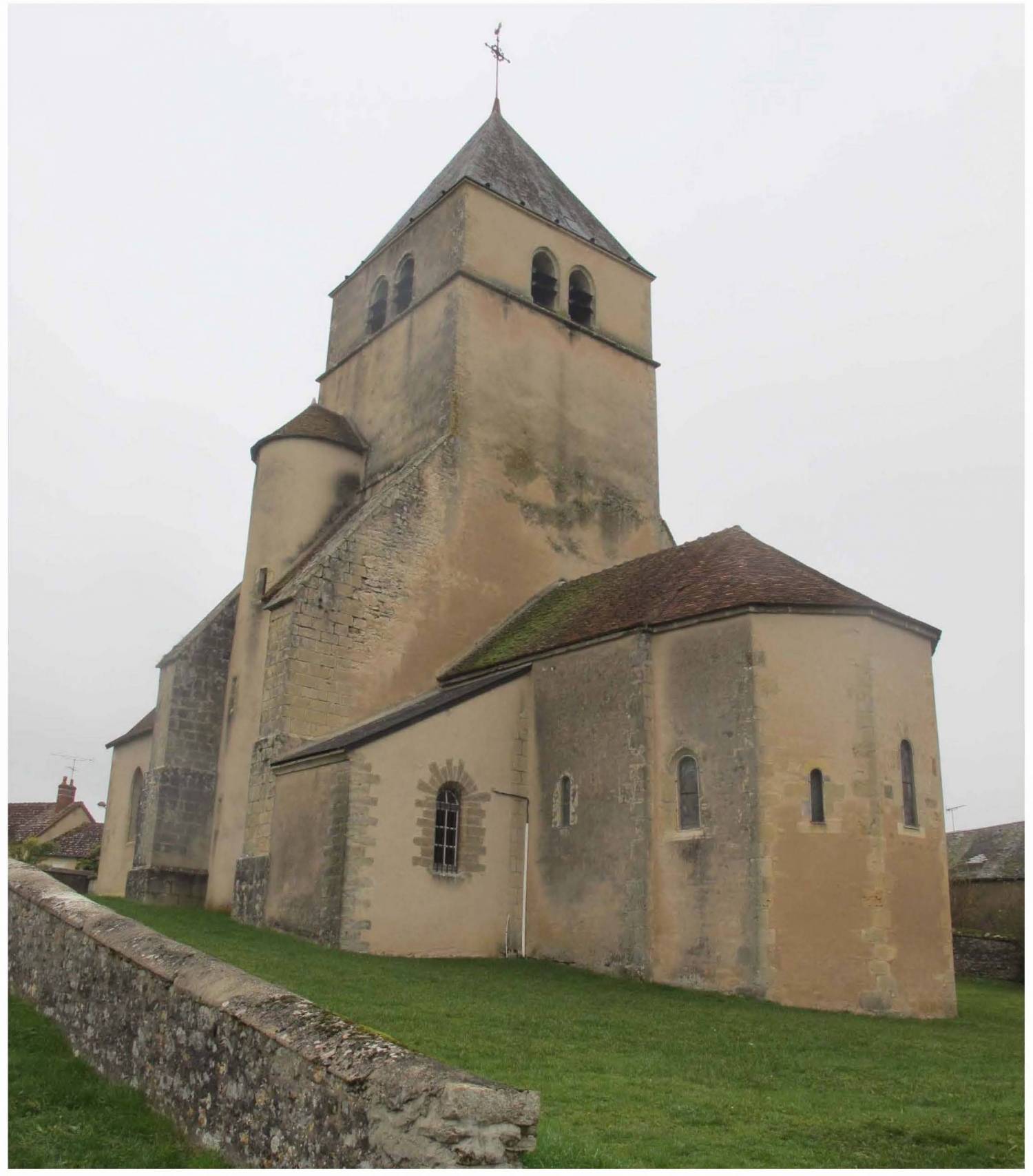 L’église serait datée du XIIe siècle. Sa première mention remonte à 1121. Remaniée de nombreuses fois, c’est au XVe s. que sont construits le clocher et les deux chapelles entre le choeur et la nef. De cette époque dateraient également les peintures murales – qui sont encore à découvrir – ainsi que le projet de couvrir d’une voûte d’ogives la nef et les chapelles.