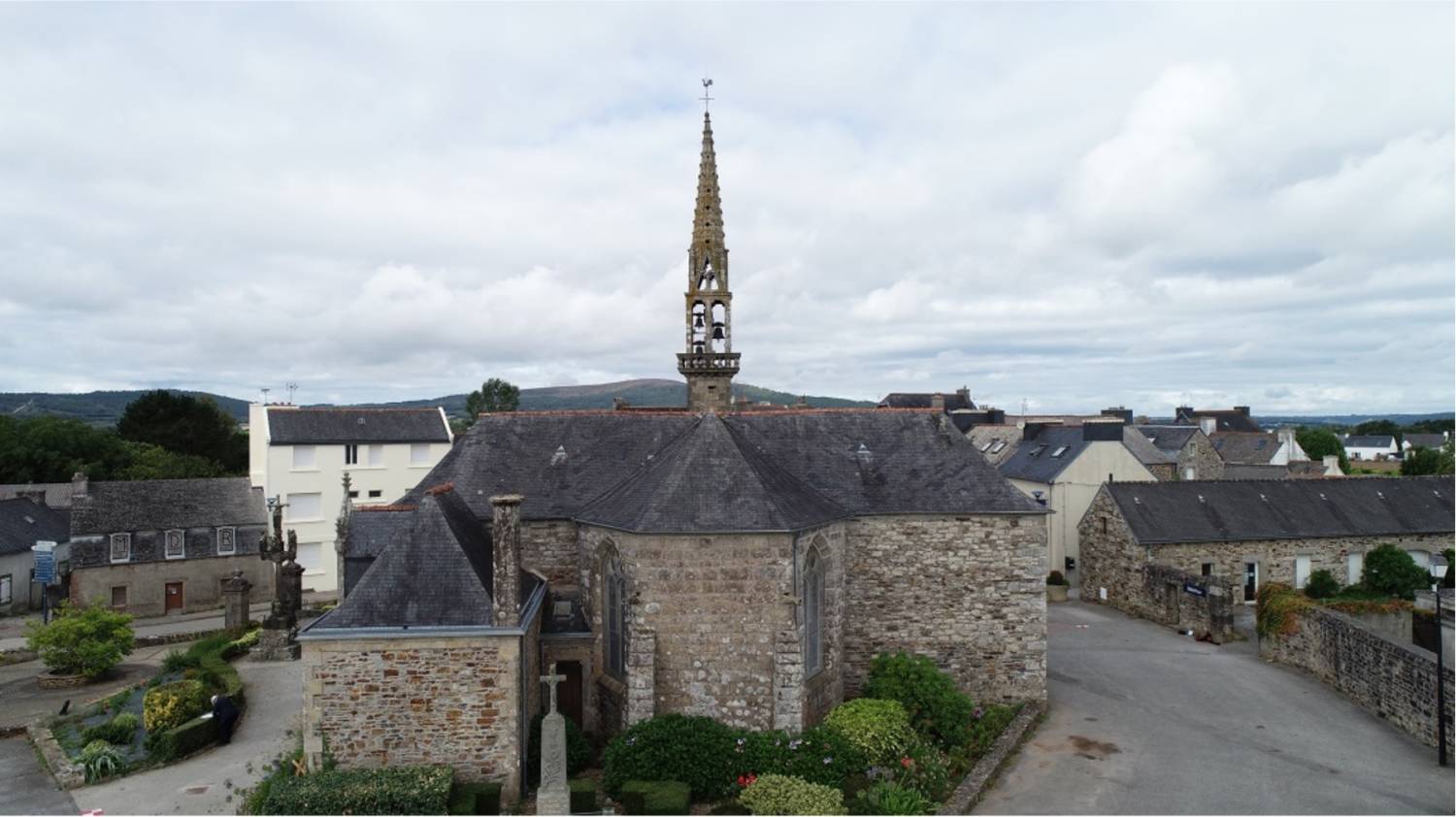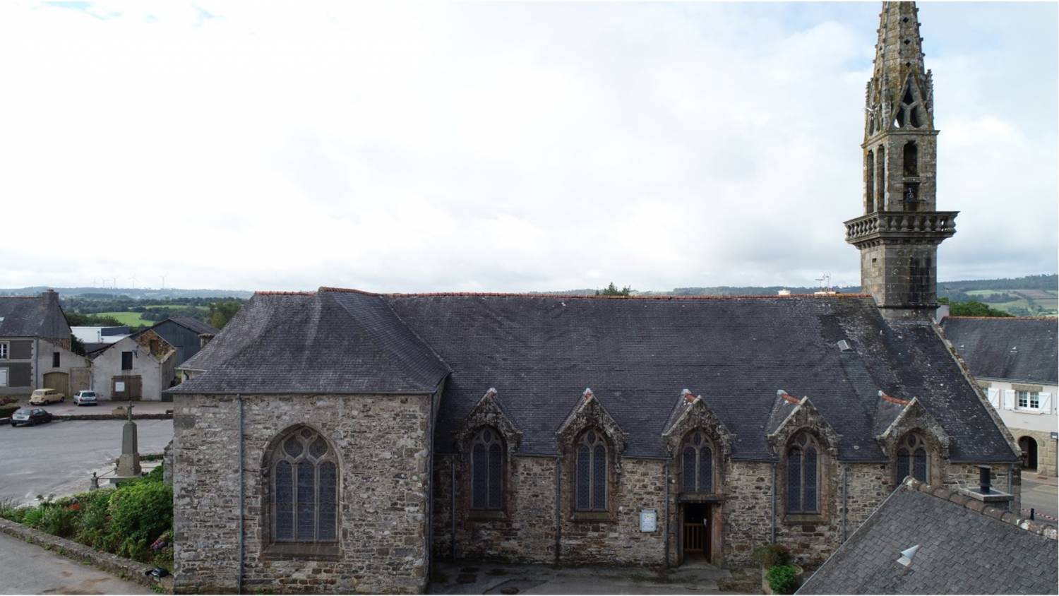 La paroisse relève, dès le 11ème siècle, de l´abbaye bénédictine de Landévennec. D´un édifice construit au 16ème siècle subsistent le choeur, une partie de l´élévation ouest ainsi que de la flèche ; la traverse sud et le sommet de la chambre des cloches portent respectivement les dates de 1632 et 1635 ainsi que les noms des fabriciens I. Guillou et G. Guillemot. La date de 1784 (clocher) correspond à une intervention ponctuelle. Au début du 19ème siècle, le bâtiment menace ruine. Commence alors une longue période de reconstruction (1826-1891).