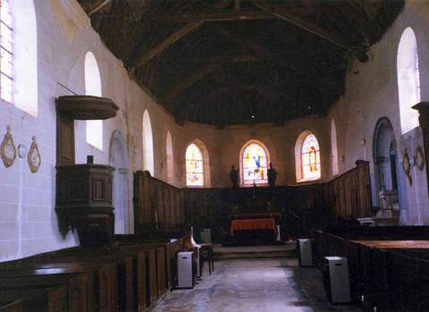 Transformée en Temple de la Raison, dépouillée d’une partie de son mobilier puis laissée à l’abandon, l’église suscita à nouveau l’intérêt des habitants au milieu du XIXe siècle. Le goût se répandait alors de donner un certain lustre aux églises de village : on appréciait la clarté obtenue par la peinture des murs en faux appareil de pierre et l’agrandissement des fenêtres. Celles-ci étaient garnies de verrières à personnages aux couleurs chatoyantes représentant des saints en rapport avec les cultes locaux ou les prénoms des donateurs. Réalisées en 1880 et 1889, les verrières du choeur sont signées Lorin, célèbre maître-verrier chartrain. Celle de la baie d’axe reprend l’Immaculée Conception Soult de Murillo. La clarté de l’édifice met en valeur les objets mobiliers de qualité que conserve l’église : intéressants lambris de choeur sculptés du XVIIIe s., maître-autel en bois doré orné des armoiries des Colbert et du chapitre de Chartres, statues du XVIIe s. représentant saint Remi et saint Nicolas, banc d’œuvre en place face à la chaire.