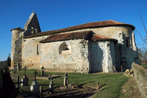 L’abside, épaulée par des contreforts à ressauts, est percée de fenêtres qui s’inscrivent dans un arc plus profond. Les absidioles, dont seule demeure celle du sud, étaient percées d’une étroite fenêtre à linteau monolithe ; celle du sud a été refaite, mais on peut voir quelques-uns de ses éléments en remploi au nord. Aucun contrefort ne renforce la nef ni les chapelles formant transept, qui devaient être couvertes d’une charpente. C’est probablement au cours de la guerre de Cent ans que le bras sud du faux transept a été modifié et son mur occidental renforcé pour permettre la construction d’une tourelle accédant à un étage fortifié.
