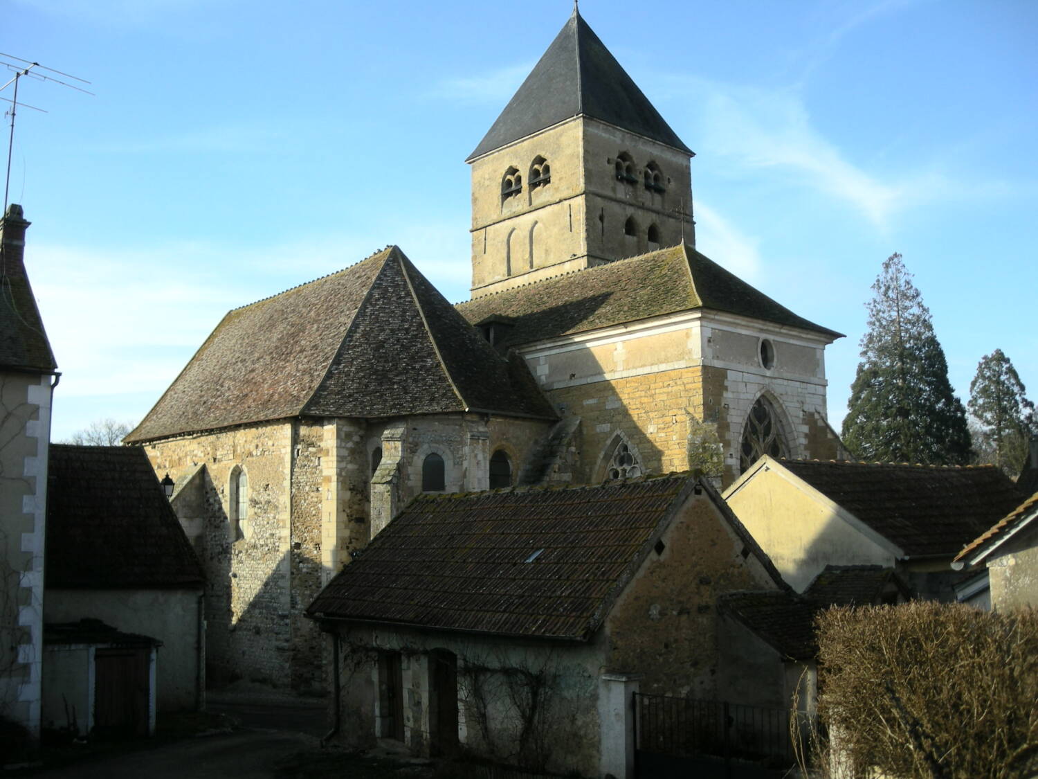 L’église paroissiale Saint-Georges faisait partie des nombreuses possessions de l’abbaye Saint-Germain d’Auxerre. Au milieu du XIIème s., l’abbé Jean de Joceval fit creuser de larges fossés d’enceinte pour protéger le village riche et paisible. Reste-t-il aujourd’hui dans l’église des constructions qui dateraient du XIIème s.? C’est possible. Cependant, la majeure partie de l’édifice actuel date de la fin du XIIIème s. ou du début du XIVème s., comme en témoigne le réseau des nombreuses fenêtres, fait de lancettes sans chapiteau surmontées de trilobes ou quadrilobes superposés.