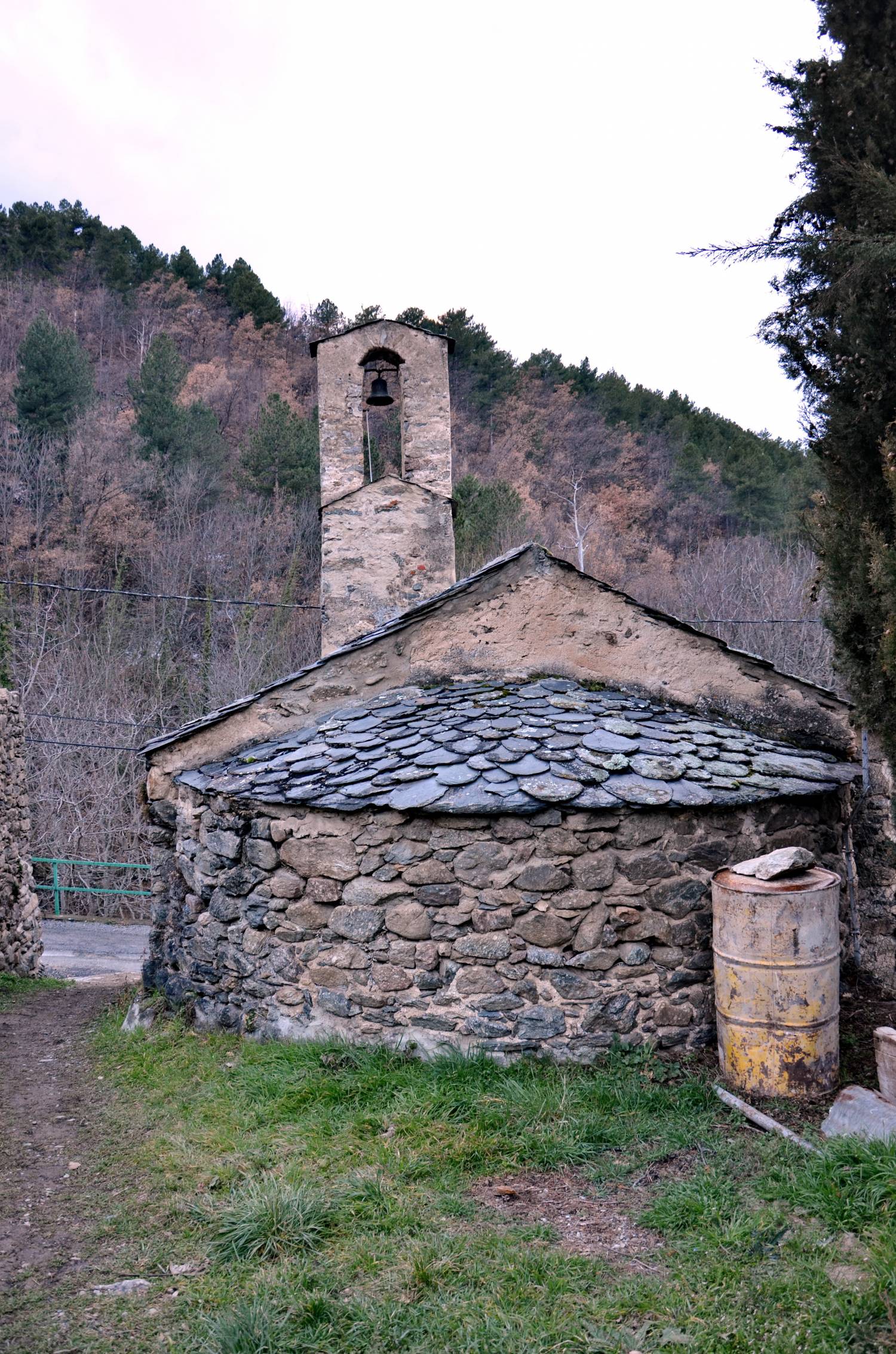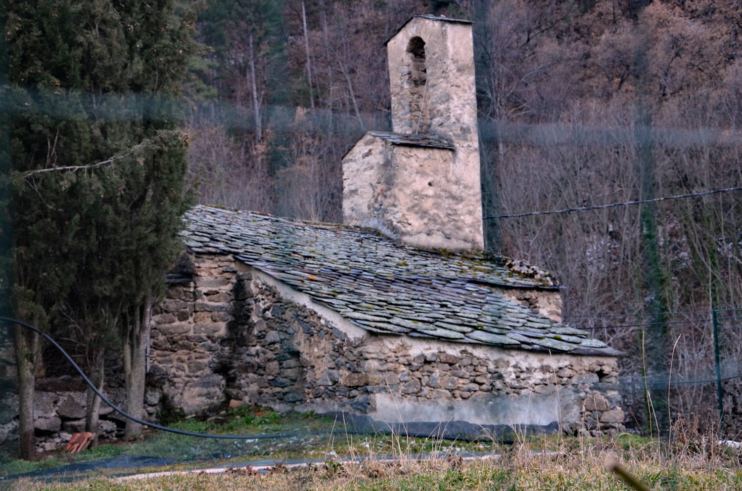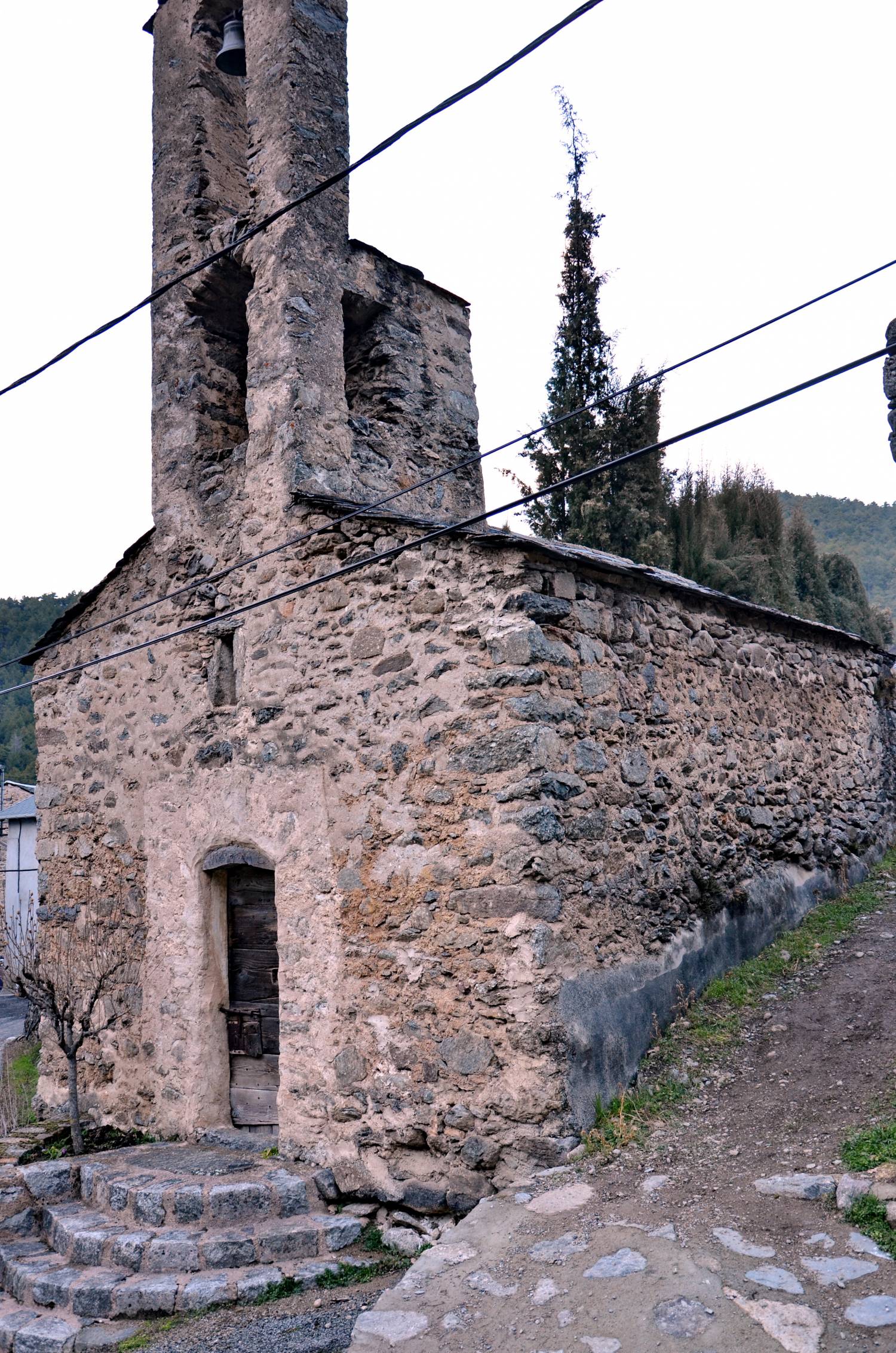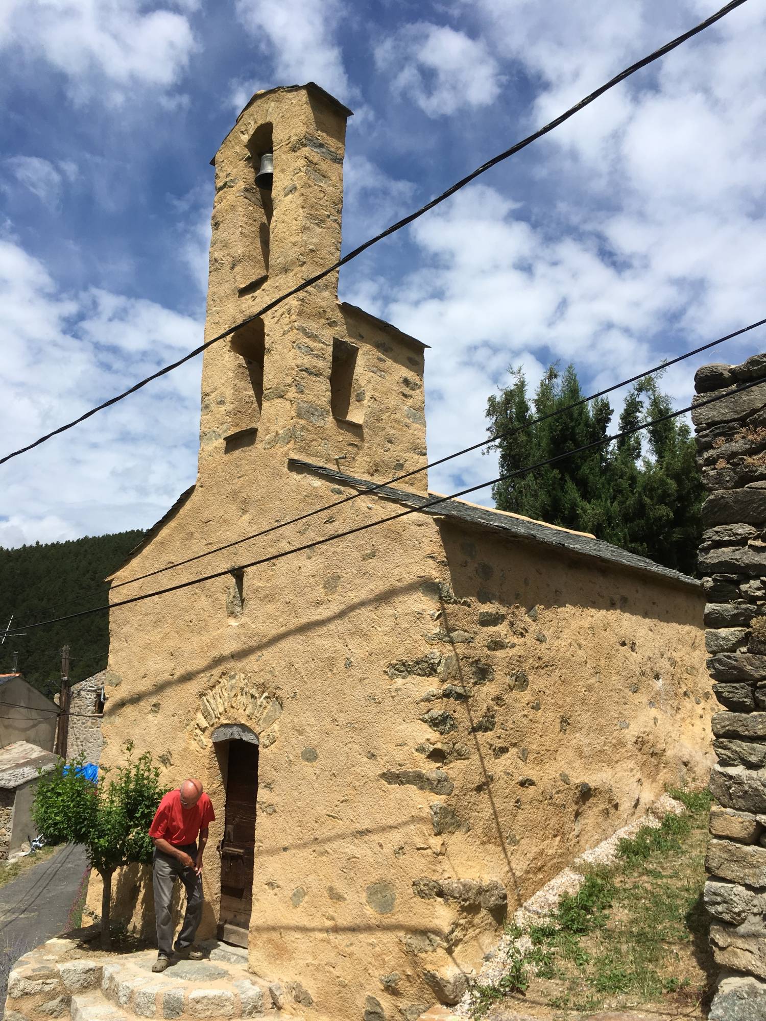 Le clocher est une simple arcature, cependant juchée au-dessus d’un petit édicule cubique qui inclut lui-même, peut-être, une arcature primitive, simple, sur sa face ouest. La superposition des deux éléments est sans doute la seule modification architecturale jamais connue par cette construction modeste.