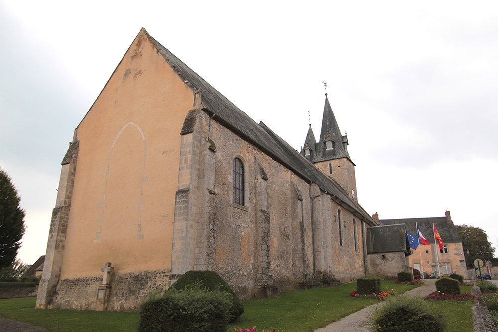 L’église paroissiale est composée d’une nef unique et à l’ouest d’une tour-clocher, jumelée avec une seconde plus basse qui fait office d’escalier. Les deux sont couvertes en ardoises par une toiture à 4 pans en b-pavillons à forte pente.