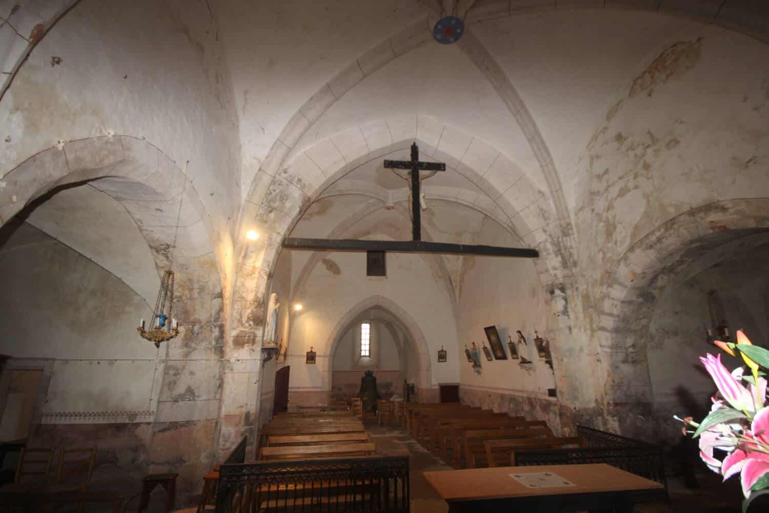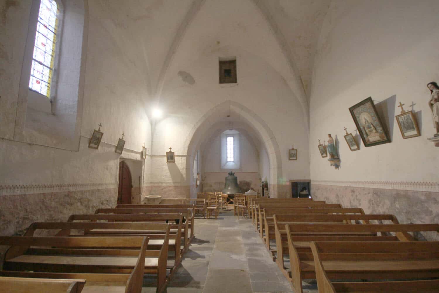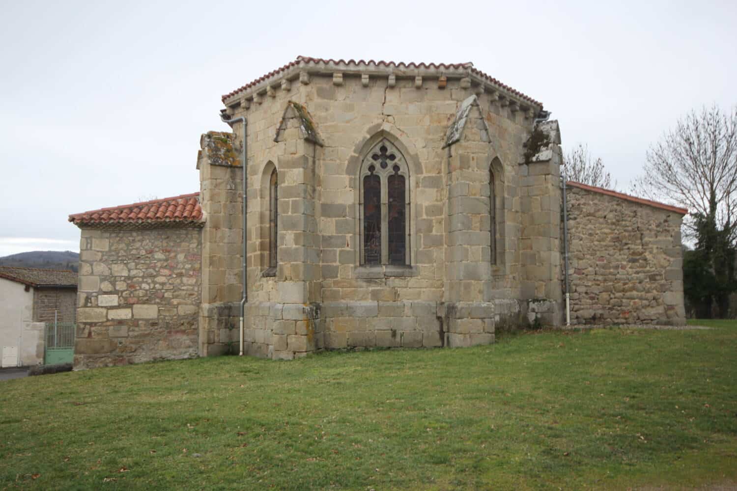 Deux chapelles, Nord et Sud, s’ouvrent entre les deux premières nervures latérales; plus basses, elles correspondent à des adjonctions postérieures (les toitures du côté Sud sont bordées de génoises). Le chevet est à trois pans, percés chacun d’une baie, celle de l’axe, plus grande, est divisée en deux par une lancette et surmontée d’un quadrilobe.