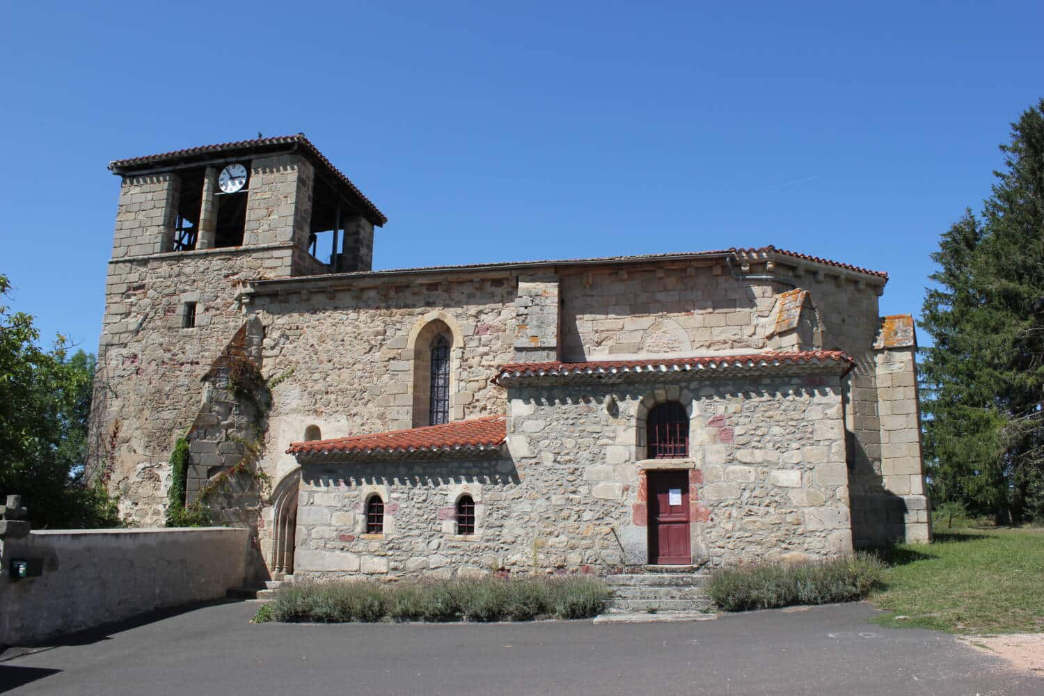 Elevé à l’Ouest, le clocher de plan carré se termine par de grandes ouvertures géminées ayant perdu leurs arcs. Le clocher contient une grosse cloche de 1564.