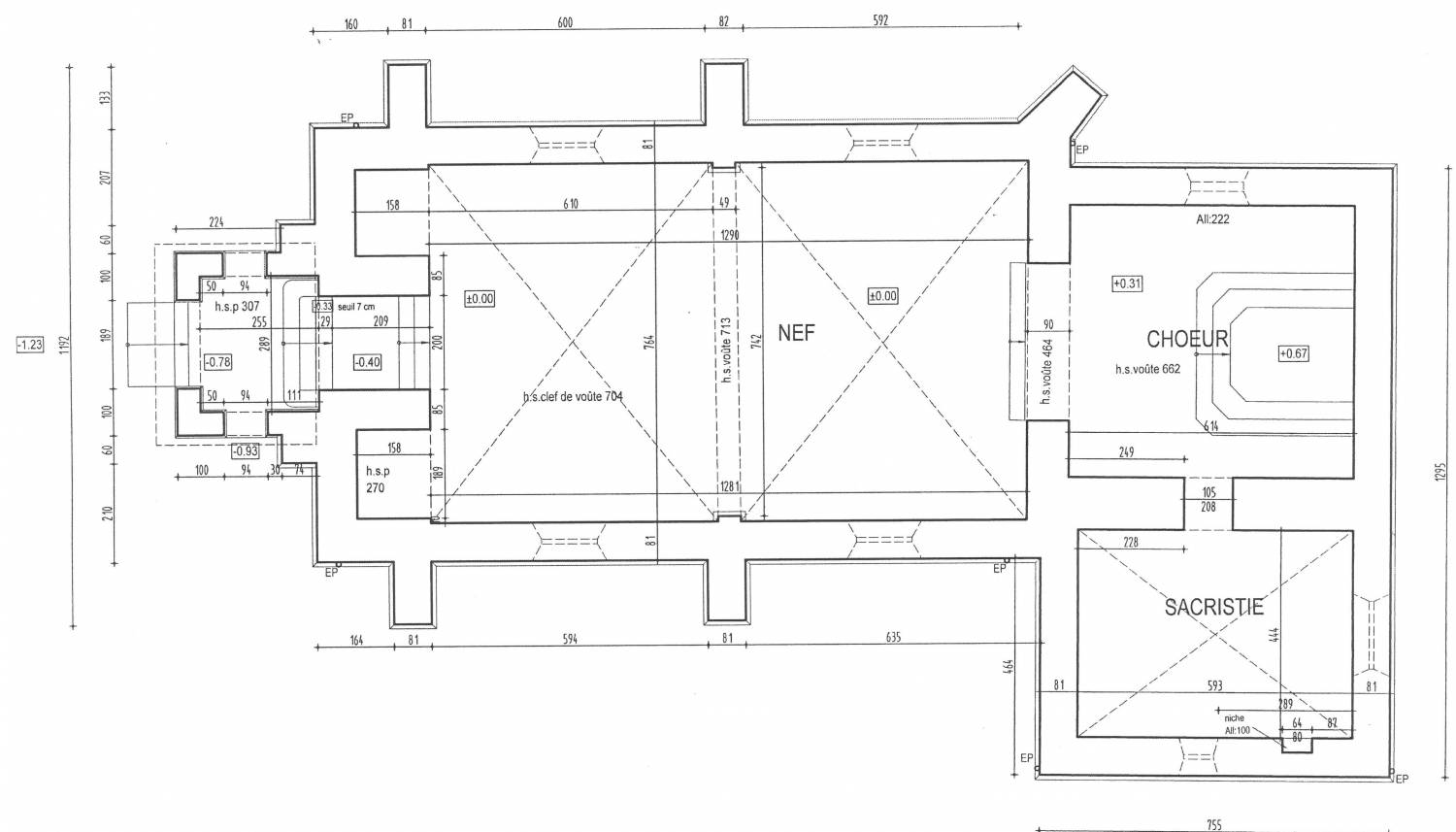 A l’exception du chœur et d’une chapelle adjacente, dédiée à Sainte Anne qui datent du XIVème siècle, la nef à deux travées, a été reconstruite de 1776 à 1780.