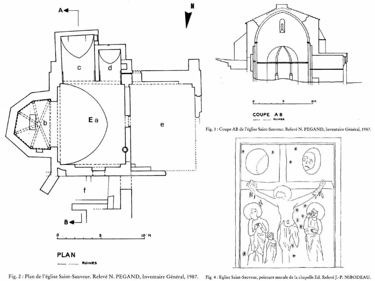 – le mur divisant en deux la partie ouest de la nef peut être daté du XVe s. de même que les chapelles sud dont l’adjonction s’inscrit certainement dans un programme de réorganisation de l’église.