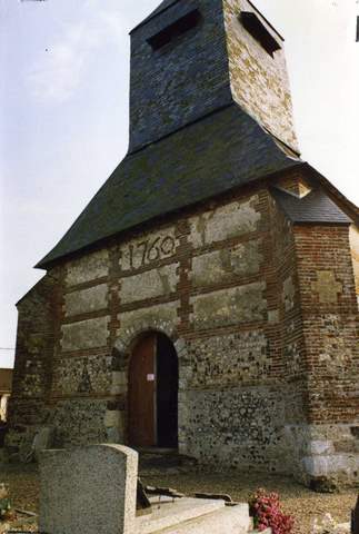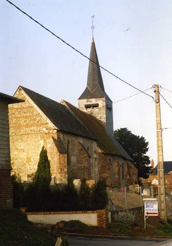 L’église de Fesques, placée sous le vocable de saine Martin, est située sur une hauteur. Une des premières mentions du lieu apparaît dans une donation de 1147 d’Hugues d’Amiens, archevêque de Rouen, à l’abbaye de Foucarmont. Le chœur, donc le récent dégagement de l’appareil de pierres de caille autorise à penser qu’il a pu être édifié dès le XIIIème s., a été remanié au XVIème s. ; il constitue la partie la plus ancienne de l’église. Il se compose de deux travées éclairées par de grand et fenêtres à l’arc brisé qui ont perdu leur remplage ; il se termine par un chevet plat. A l’extérieur, le mur du chevet présence la trace d’une ancienne fenêtre d’axe, vraisemblablement murée au moment des aménagements intérieurs du XVIIIème s ., et témoigne des interventions successives par la différence des matériaux utilisés : pierres de taille appareillées en quelques endroits de la partie basse, briques et silex disposés en alternance dans la partie haute. Le chœur est couvert d’une toiture d’ardoises. La nef, de deux travées et l’imposante tour-clocher qui la précède, plus tardives ont été profondément remaniées au cours du XVIIIème s., comme l’atteste le millésime de 1760, inscrit en briques au-dessus de la porte. Tandis que la nef est couverte d’une toiture de tuiles, plus élevée que celle du chœur, le clocher est, pour sa part, totalement habillé d’ardoises. Composé d’une flèche, d’un beffroi avec abat-sons et d’une toiture à trois pans – ces trois éléments tous couverts d’ardoises -, il repose sur une base quadrangulaire massive. De nombreux contreforts ont été ajoutés pour épauler le chœur et la nef ; beaucoup sont tardifs. La sacristie attenante date, elle aussi, du XIXème siècle. L’intérieur, très modeste, a été couvert d’un badigeon ; par contraste, le maître-autel avec son retable, sa statuaire et son décor de chêne sculpté, qui occupe tout le mur du fond du sanctuaire, paraît encore plus imposant ; l’artiste a dû, pour développer son programme, traiter les niches d’angle en courbe. Le dallage de carreaux de terre cuite bicolore a été conservé. La première tranche de restauration de l’église, prévue sur plusieurs campagnes, concernait la réfection de la charpente et de la couverture ; la Sauvegarde de l’Art Français a attribué pour ces travaux une subvention de 75 000 F en 1995.