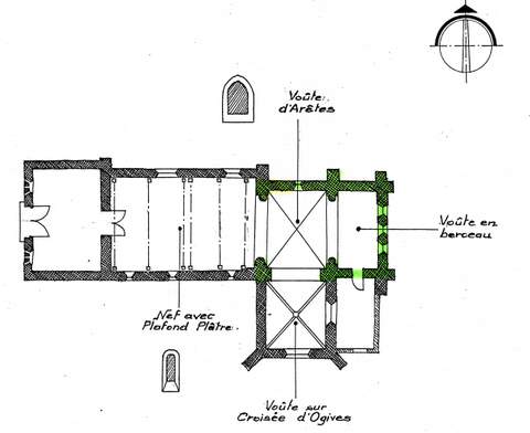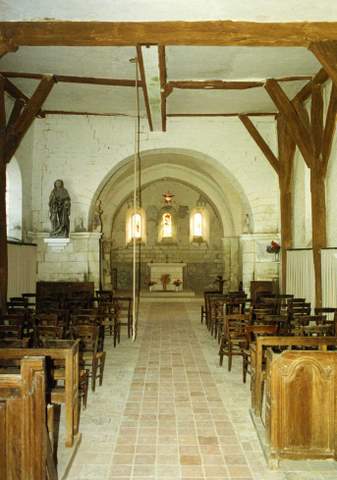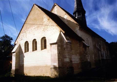 Cette charmante église paroissiale, placée sous le vocable de saint Benoît car elle était à la présentation du prieur de Saint-Benoît-sur-Loire, intègre parfaitement dans sa construction des éléments appartenant à différentes époques. Le chevet rectangulaire, voûté en berceau, éclairé à l’orient par un triplé en plein cintre, indique le XIIème siècle. Tour amour, une corniche ornée de billettes se prolonge dans la travée carrée qui précède la nef. Le doubleau séparant le chœur de l’avant-chœur retombe sur des chapiteaux à feuillage romans. La voûte d’arête et certaines modifications de cette partie de l’édifice sont postérieures, probablement contemporain et de la remarquable chapelle construite au XVIème s. sur le flanc sud-est. La nef unique est simplement couverte d’un plafond en plâtre. Le mur sud a conservé ses ouvertures primitives en plein cintre ; celles du nord ont été refait et à l’époque moderne. A l’ouest, le porche roman est percé d’un dispositif particulier de meurtrières. A l’intérieur est conservé un important mobilier : une Vierge à l’Enfant du XIVème s., un Christ en bois et des fonts baptismaux du XVIème s. sont classés Monuments historiques ; un saint Benoît ainsi qu’un lutrin en bois doré du XVIIème s. sont également intéressants. La nef a conservé ses bancs de bois anciens. Malheureusement, l’église étant bâtie entièrement en craie du pays, matériau fragile, il apparaît aujourd’hui dans le gros œuvre des fractures, des fissures, des cassements, une érosion des parements extérieurs donnant lieu à un constat alarmant. L’état de la charpente est satisfaisant en dehors de quelques désordres dans les assemblages, dus au tassement des maçonneries. Une première campagne de travaux concerne le chœur dont l’ensemble des maçonneries doit être dégagé en supprimant les projections de ciment effectuées autrefois sur le mur oriental. Une deuxième campagne achèvera la consolidation de cette jolie église qui présente, en dehors de son architecture et de son mobilier, l’intérêt d’avoir eu de 1736 à 1738, comme curé donné, l’abbé de l’’Épée, bienfaiteur des sourds-muets. La Sauvegarde de l’Art Français a accord é pour la première campagne une subvention de 70 000 F en 1995.