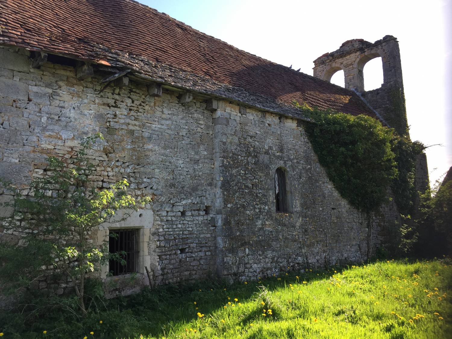 Le logis et l’église, reconnaissable à son clocher-mur, forment deux ailes en retour d’équerre.
