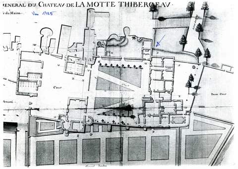 La chapelle du château de la Motte-Thibergeau, bien intégrée dans l’ensemble castral, figure sur un lavis de la fin du XVIIe s.