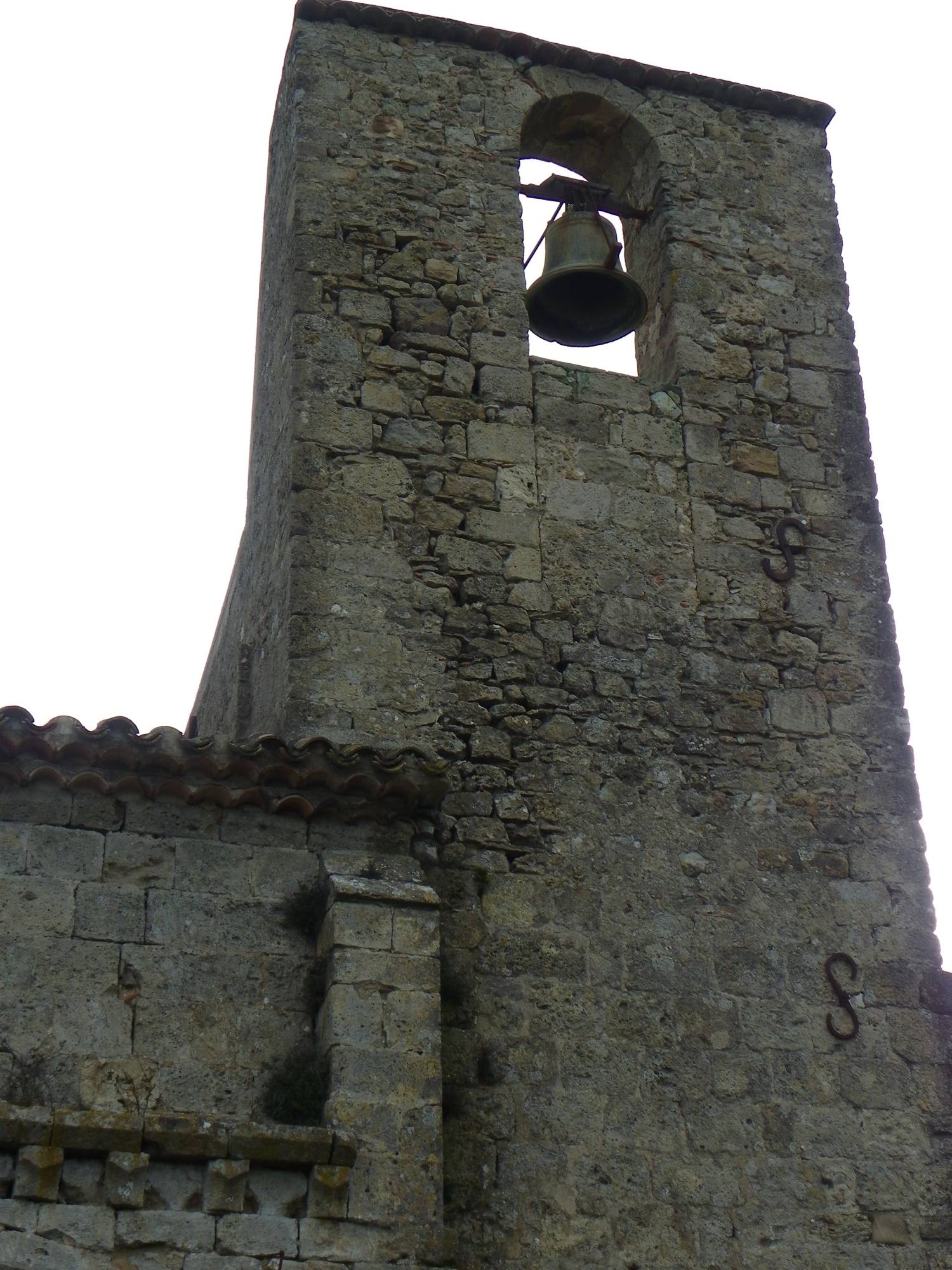 Le clocher, barlong, est adossé au mur occidental. Les liaisons montrent qu’il est plus récent que ce mur.