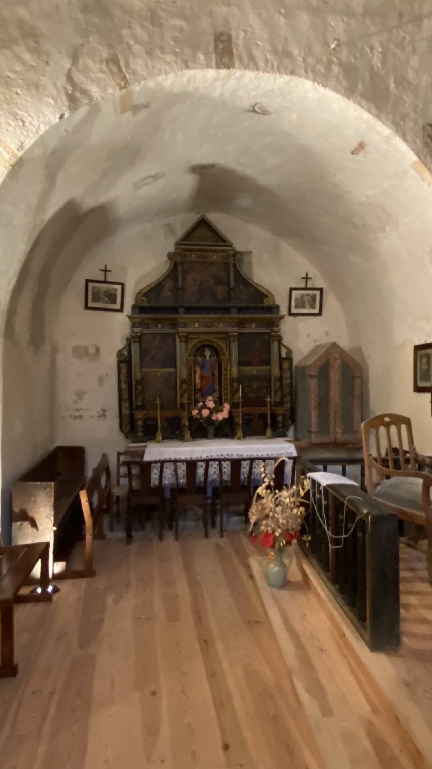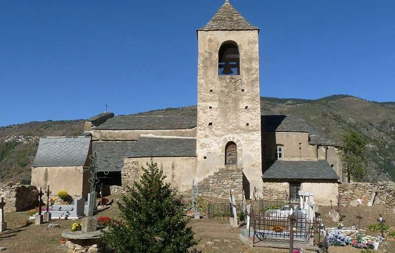 Église dédiée à la Sainte Trinité. Son intérêt archéologique est d’autant plus grand qu’elle a été bâtie dans un site merveilleux, dominé par les vestiges d’un château médiéval qui défendait le passage de la vallée vers l’Espagne.