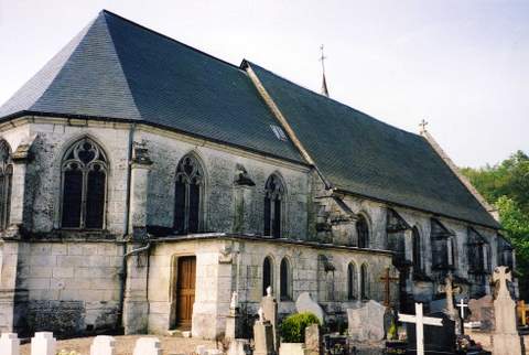 L’église, dédiée à saint Martin comme dans de nombreuses paroisses de Normandie, a d’abord été sous le patronage de l’archevêque de Rouen avant de passer, à l’époque de Charles VI, sous celui du roi de France. Citée dès le XIe s., elle a été entièrement reconstruite au XVIe. La nef et le clocher inachevé sont de cette époque. Le chœur, trop remanié au XVIIe s., a été rebâti en 1879 dans le style de la nef, pour répondre à la mode de l’unité de style chère aux disciples de Viollet-Le-Duc.